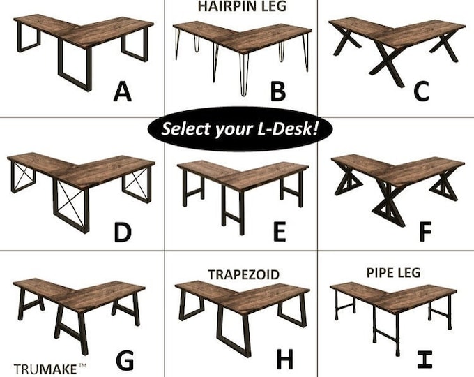 Rustic Wood L-Shaped Desk Wood Steel L-Shaped Desk, Home Office Desk, Computer Desk, Corner Desk, Farmhouse Desks, Modern Industrial Desks