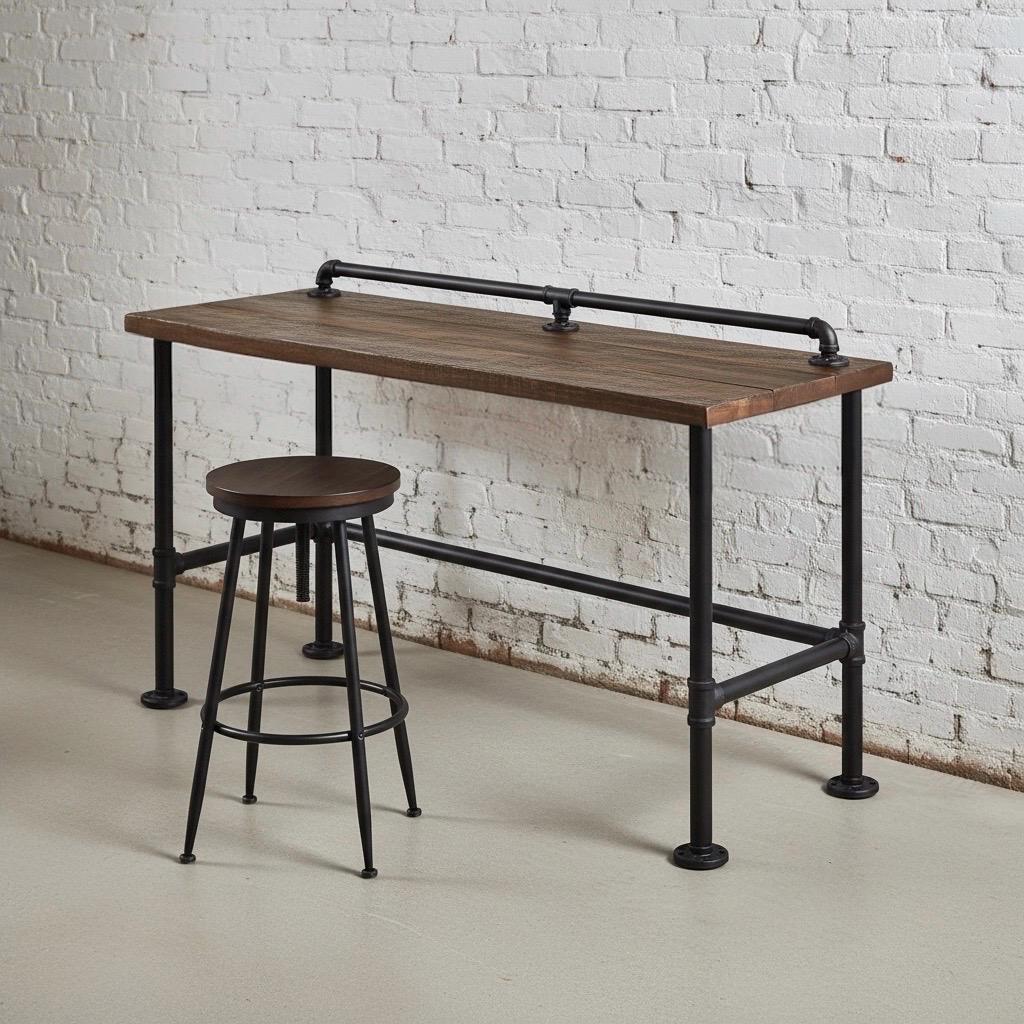 • TRUMAKE™ RUSTIC WOOD & PIPE BAR TABLE