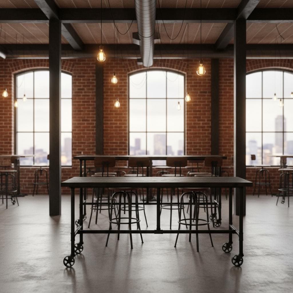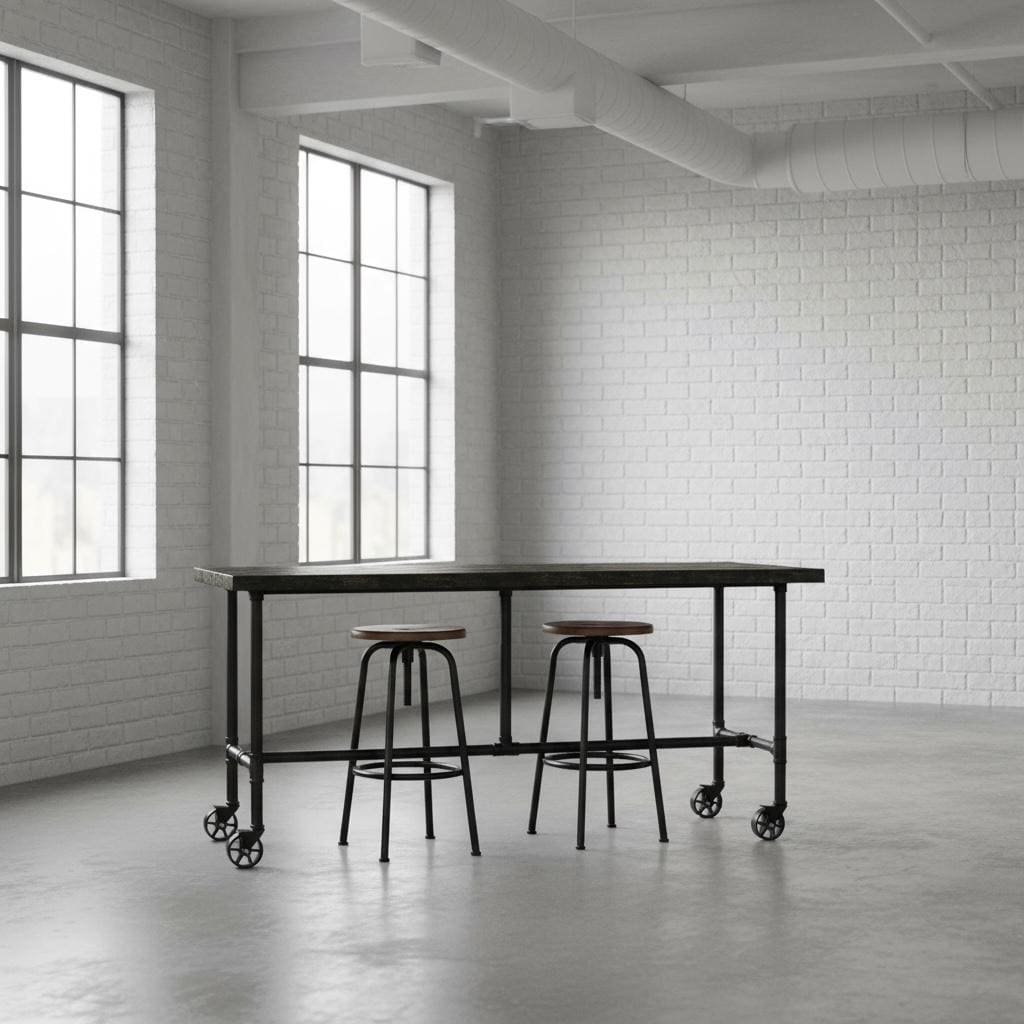 • 36 inch High Counter Height • RUSTIC WOOD & PIPE BAR TABLE • with Locking Swivel Caster Wheels included