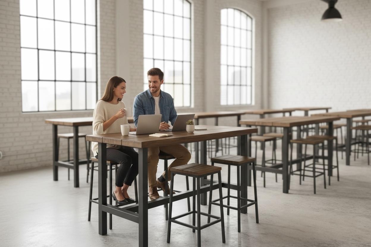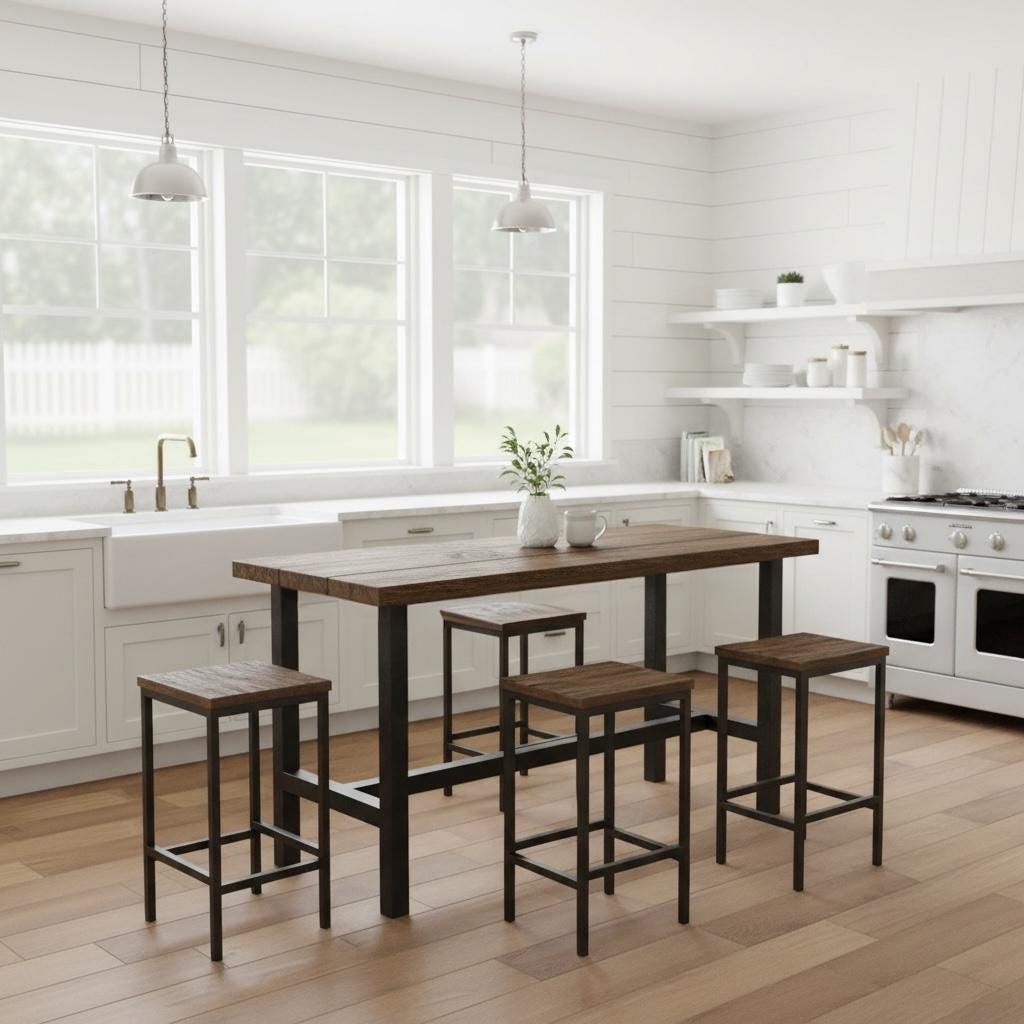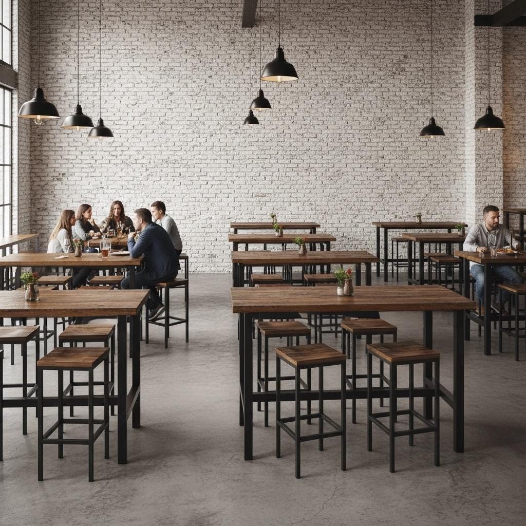 Our beautiful Industrial style Bar Table features a unique steel leg frame topped off with a thick 1.5" solid wood surface.