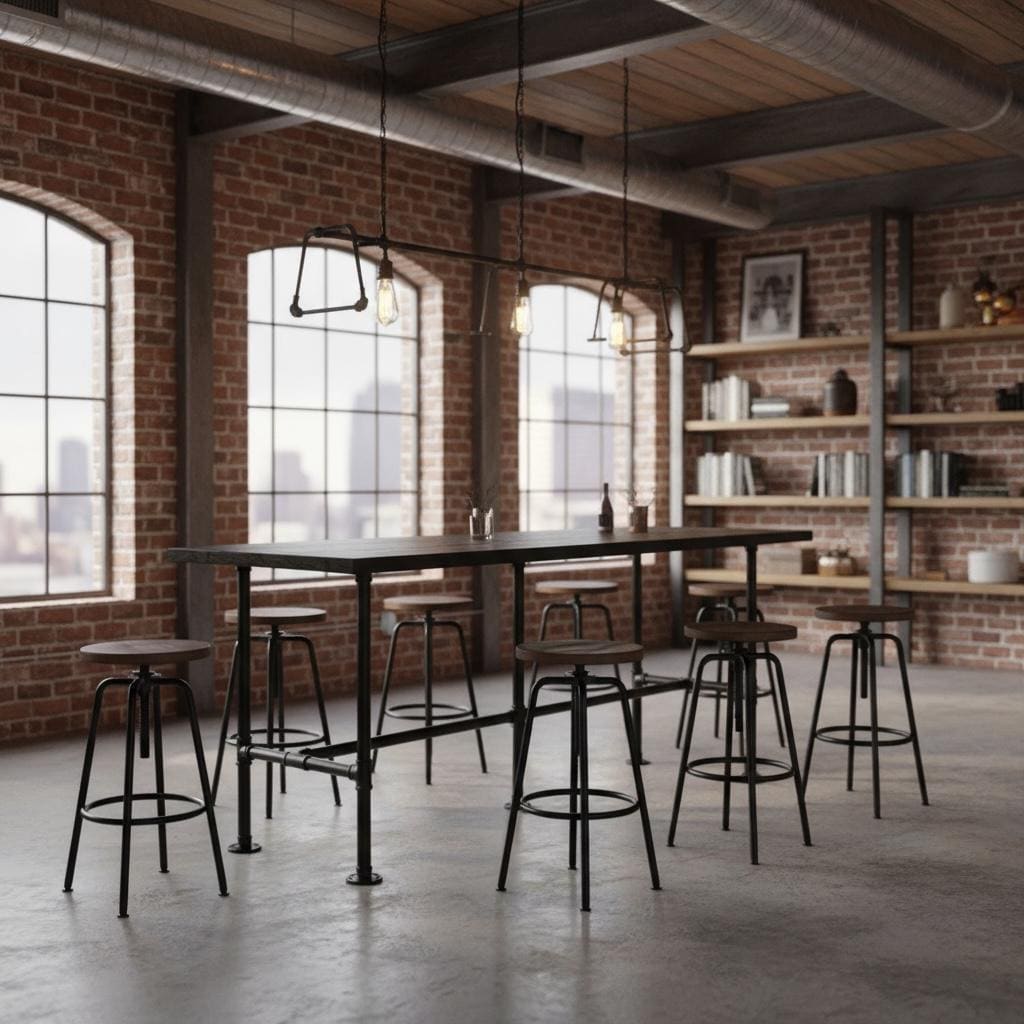 • TRUMAKE™ RUSTIC WOOD & STEEL BAR TABLE