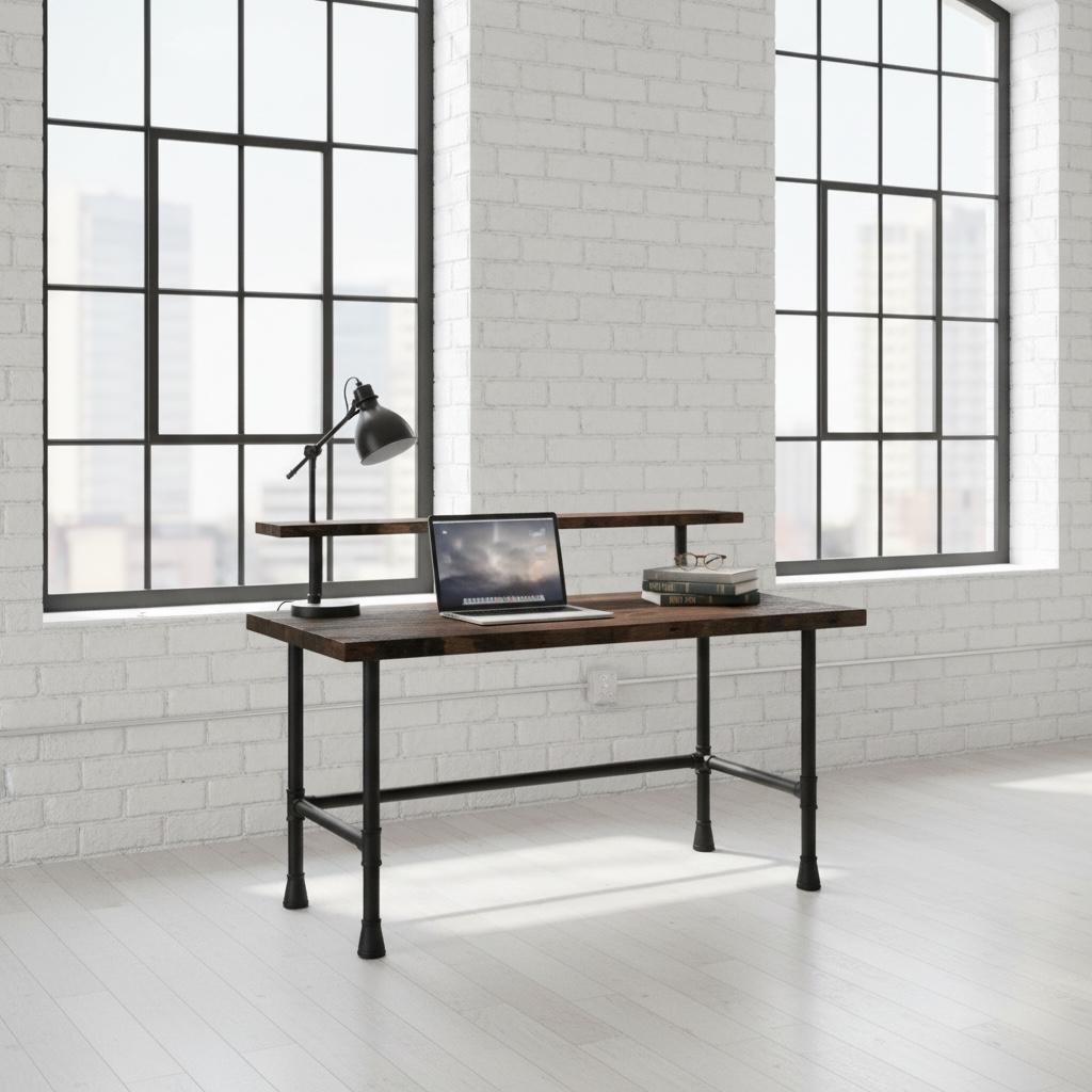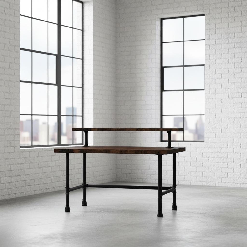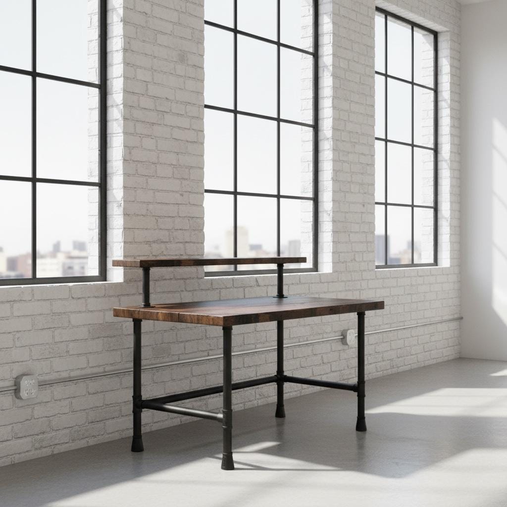 This beautiful Rustic Wood Desk features industrial steel pipe legs topped off with a thick 1.5" solid wood surface.