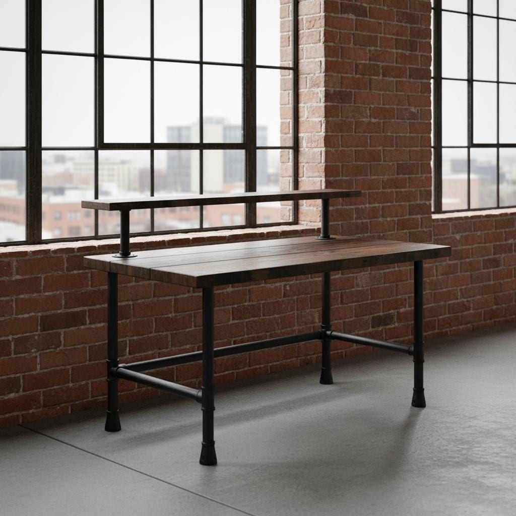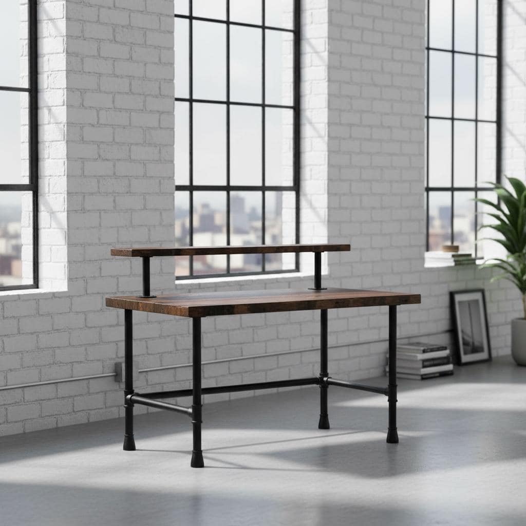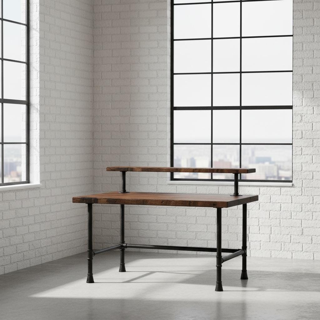 RUSTIC WOOD & PIPE DESK with ELEVATED SHELF handmade by TRUMAKE™