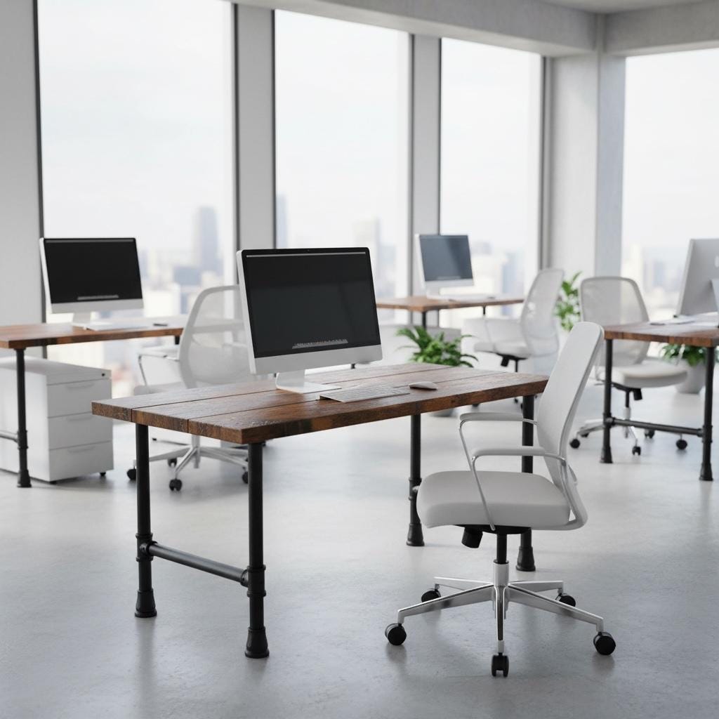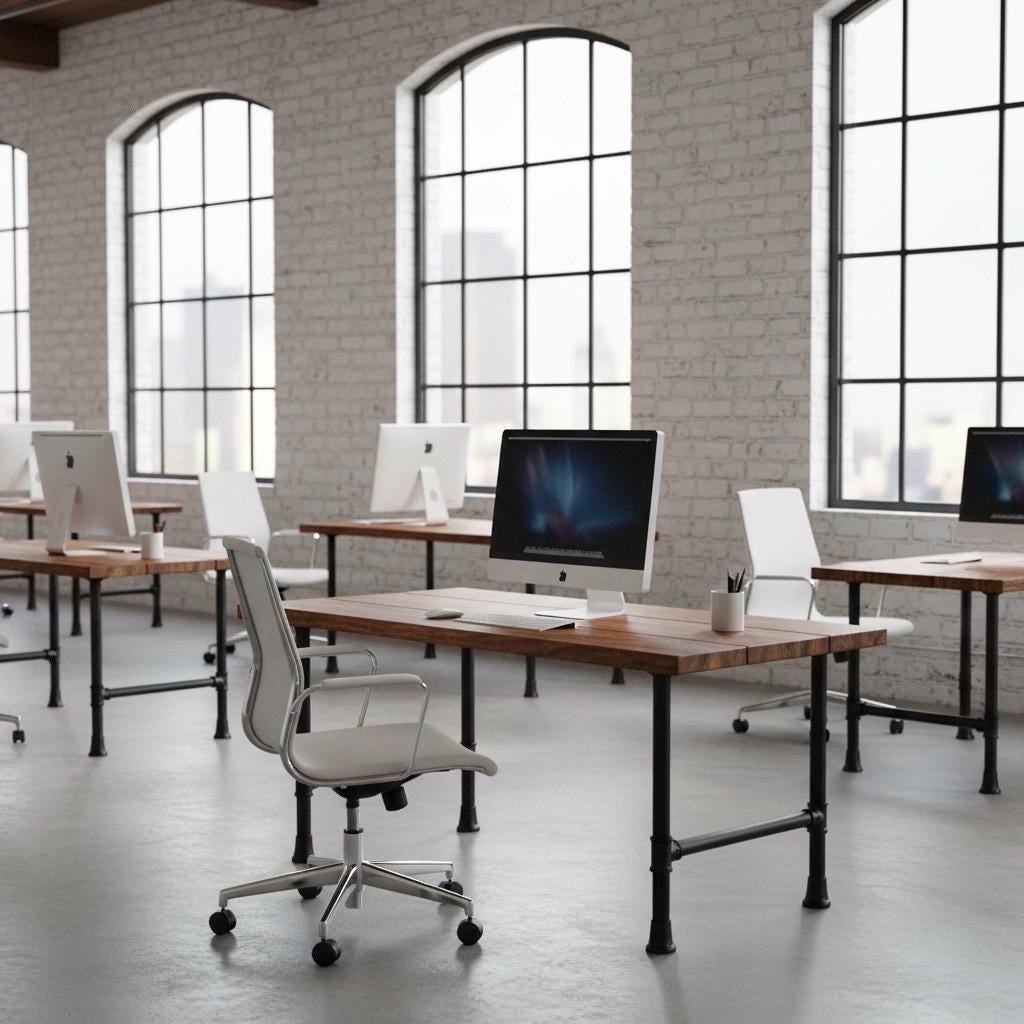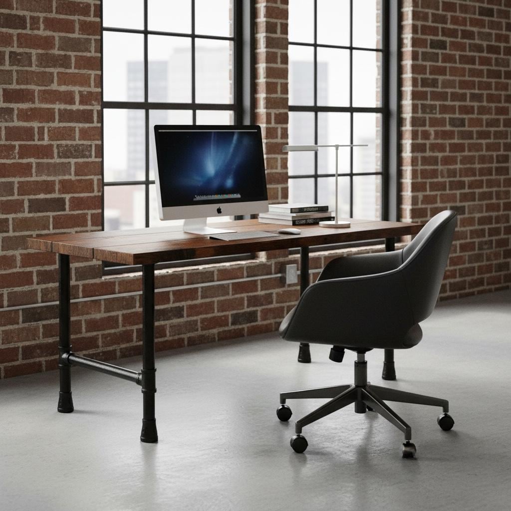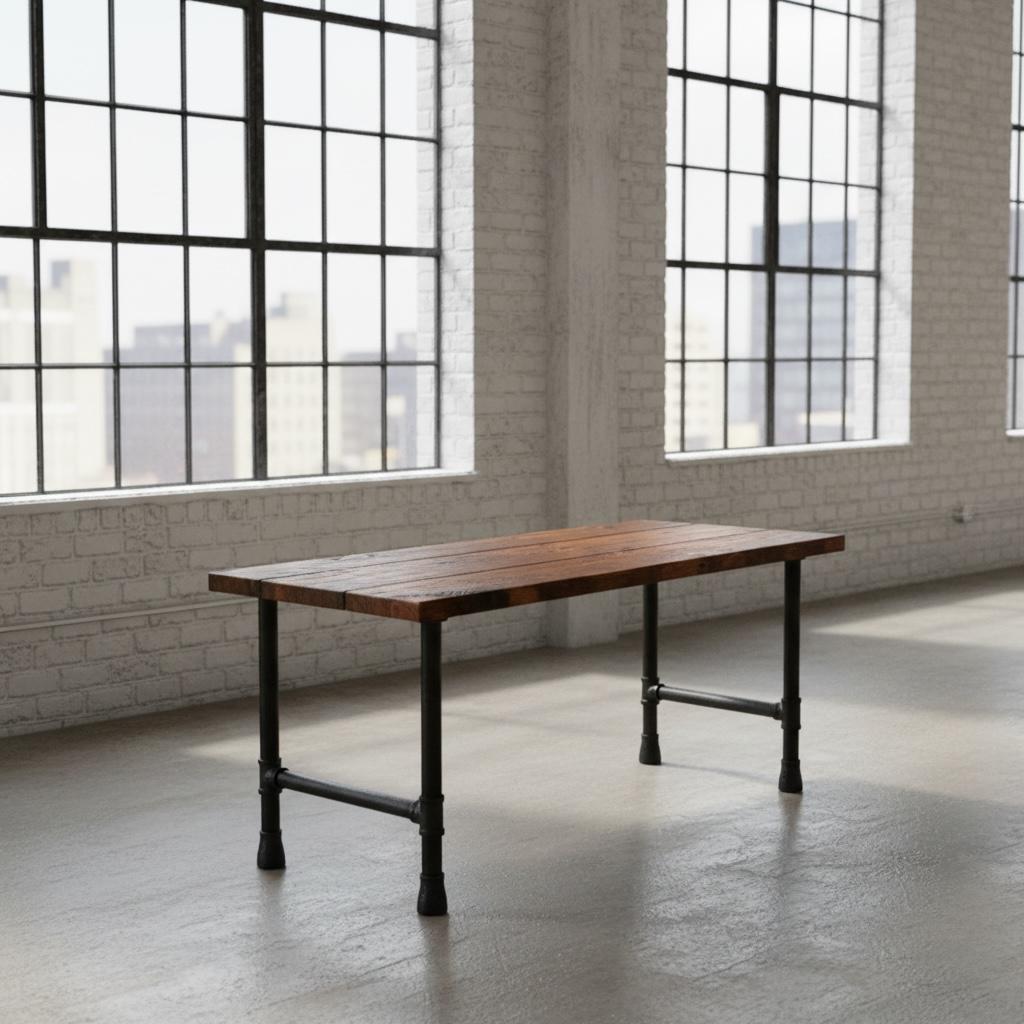 Our beautiful Desk features industrial steel pipe legs topped off with a thick solid wood surface. The rough sawn wood top is handcrafted from carefully selected timber, chosen for characteristics such as knots, variable grain patterns, saw marks, nail holes, dents and distressed details, as well as many other unique characteristics.