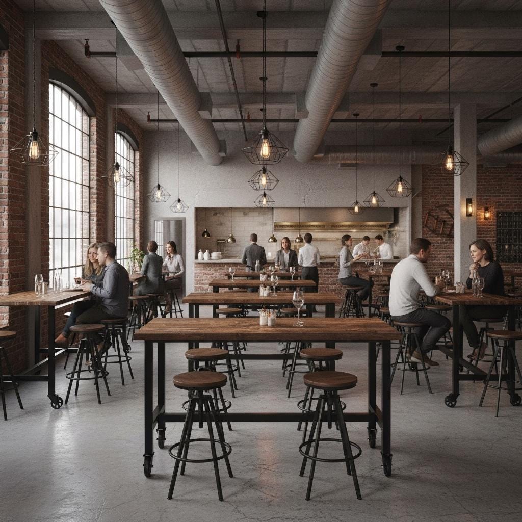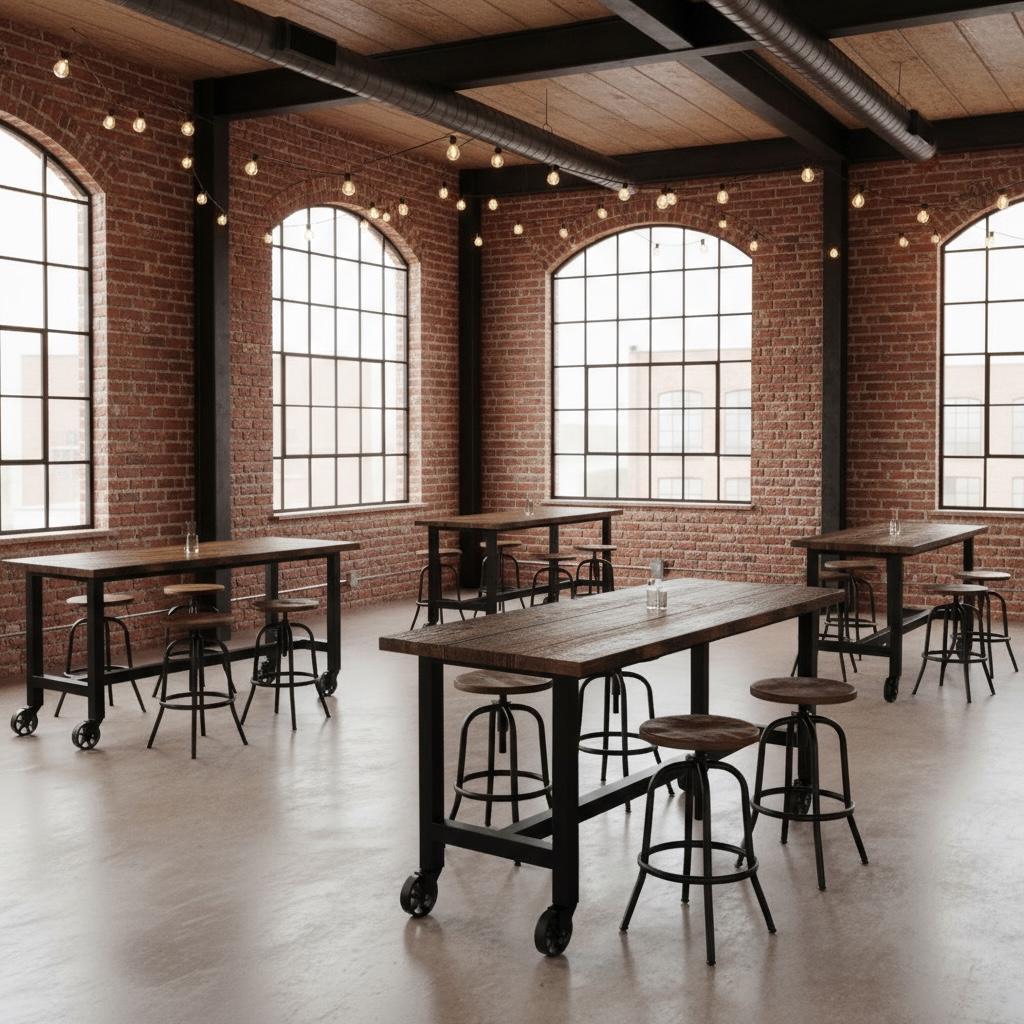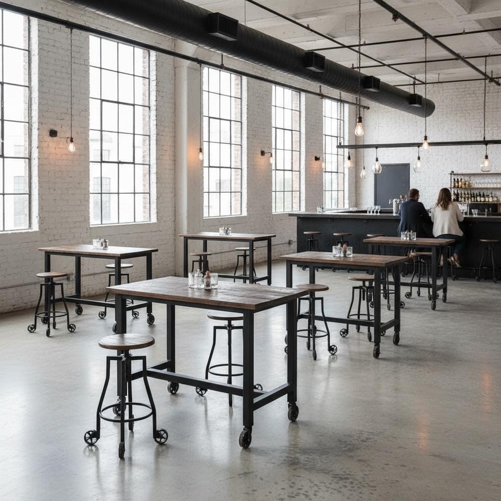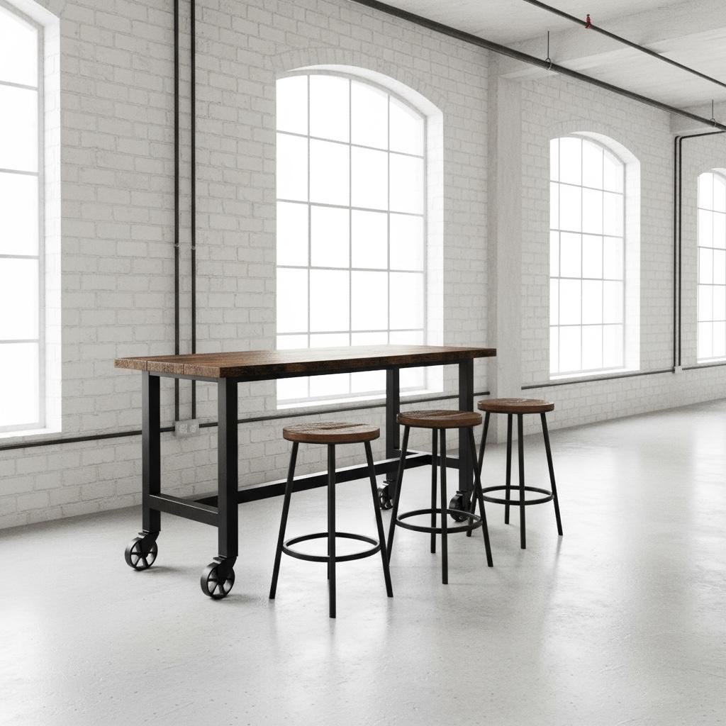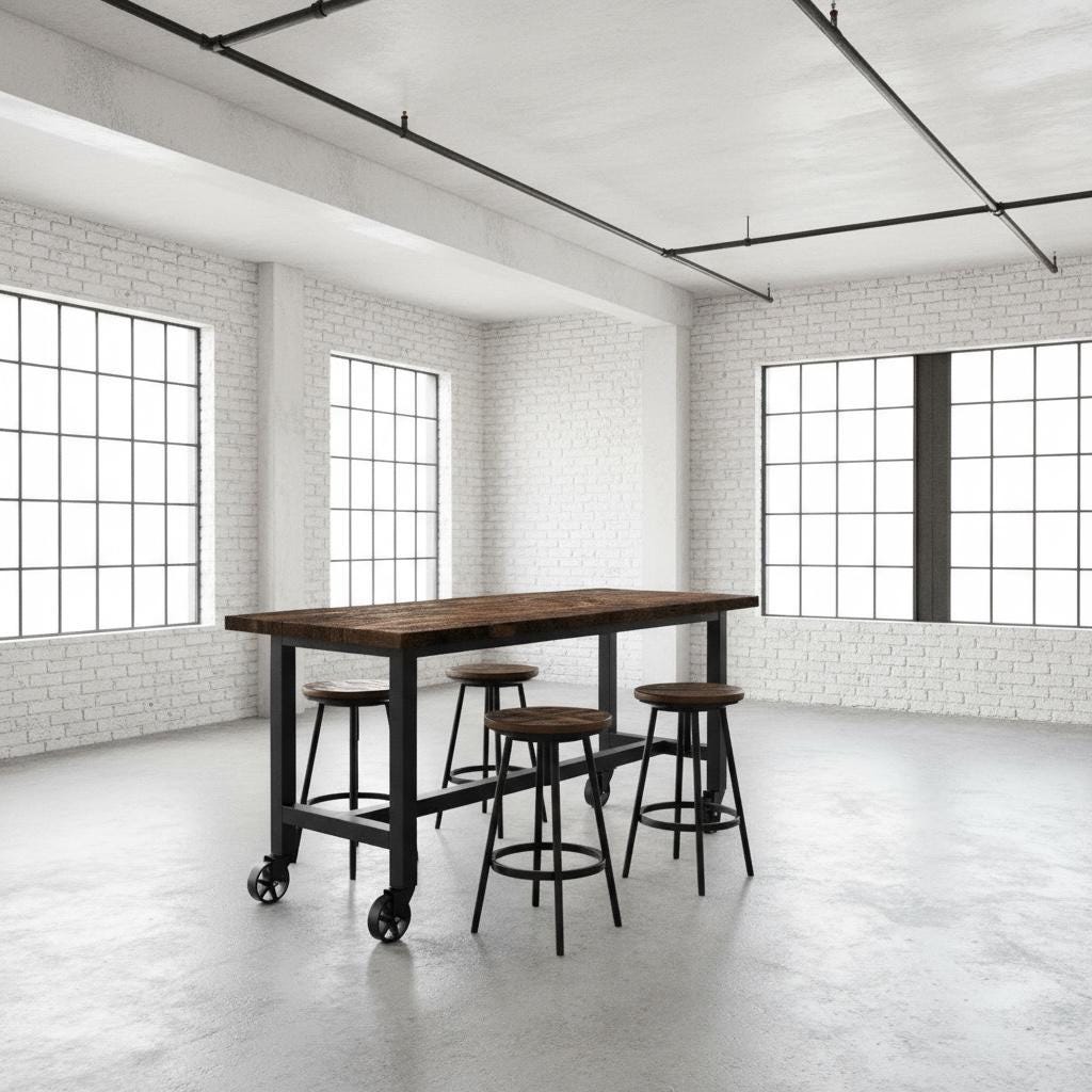 • TRUMAKE™ RUSTIC WOOD & STEEL BAR TABLE with Locking Caster Wheels