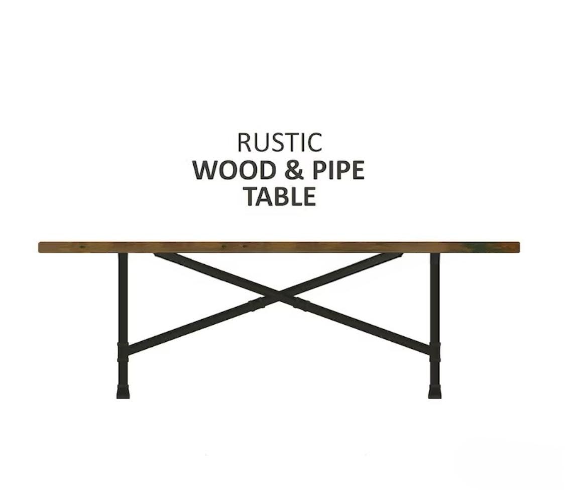 This beautiful Rustic Wood Table features industrial steel pipe legs topped off with a thick 1.5" solid wood surface. The wood top is handcrafted from carefully selected timber, chosen for characteristics such as knots, variable grain patterns, saw marks, nail holes, dents and distressed details, as well as many other unique characteristics. Each piece is handled with care and crafted with hours of skillful labor. Like crafting a piece of artwork, the wood is sawed, shaped and sanded to form this beautiful treasure. The surface also features approximately one-half inch V-shaped grooves along each joined board edge to provide a rustic plank board feel and appearance. A full array of rich finishes and colors are available for your choosing. All finishes are hand applied and top coated with a water based polyurethane. Order your very own piece of handcrafted furniture today!