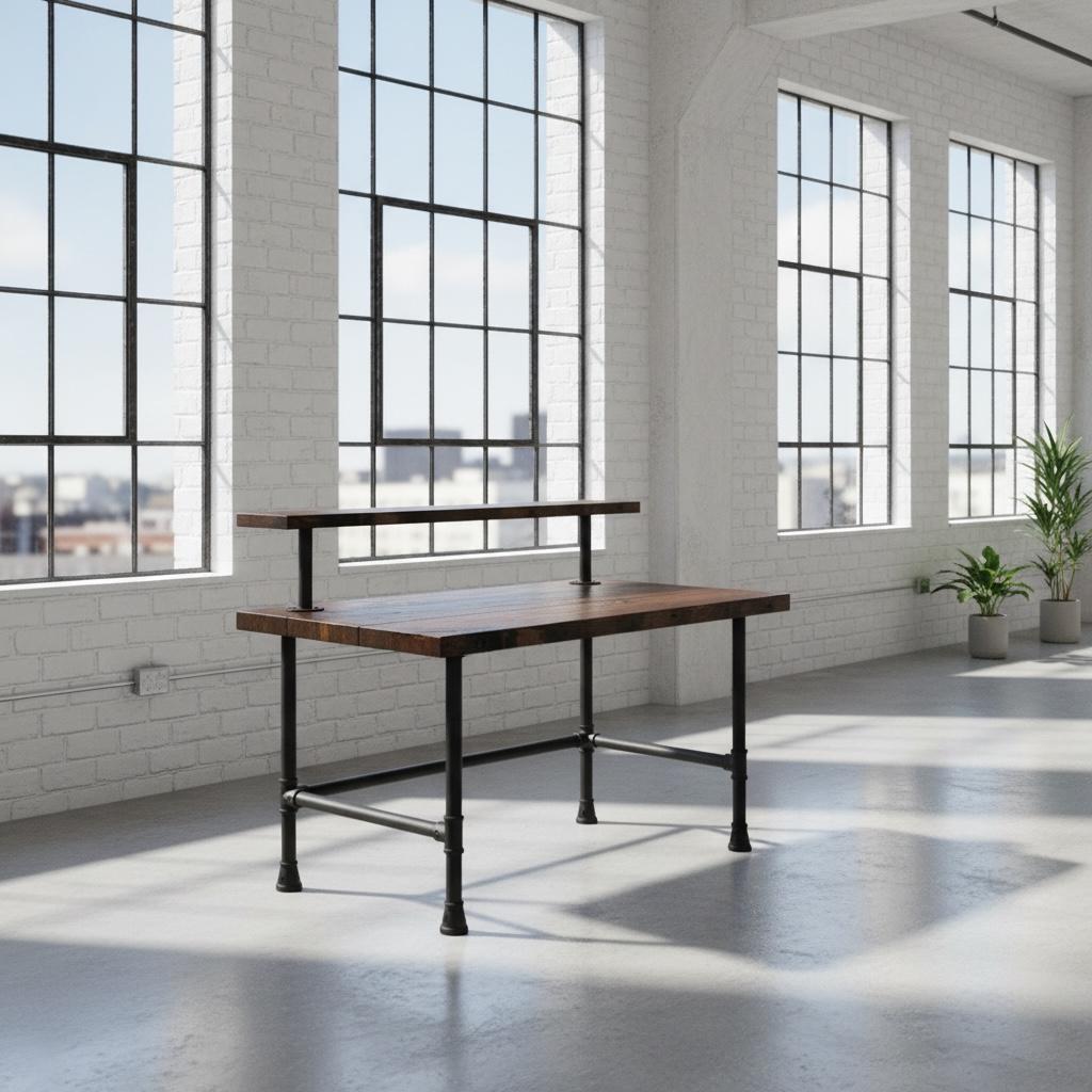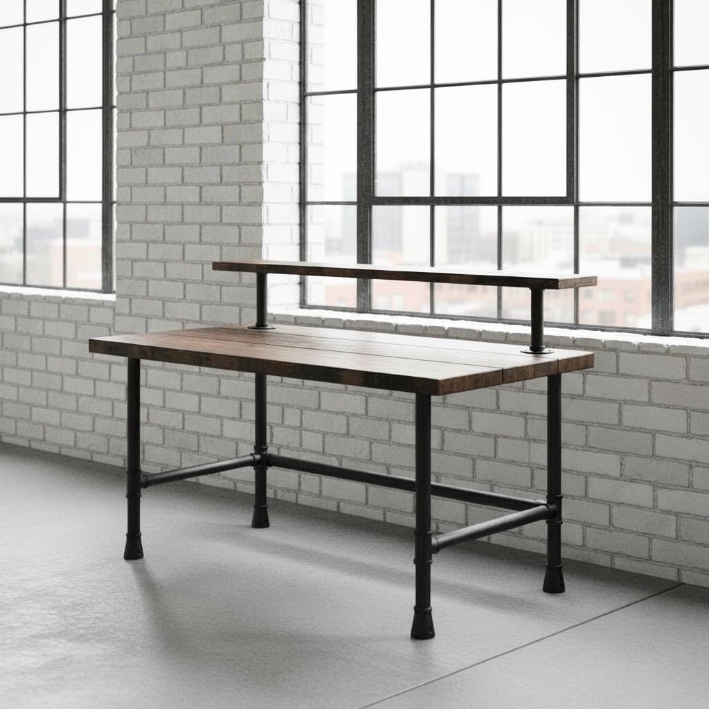 This beautiful Rustic Wood Desk features industrial steel pipe legs topped off with a thick 1.5" solid wood surface.