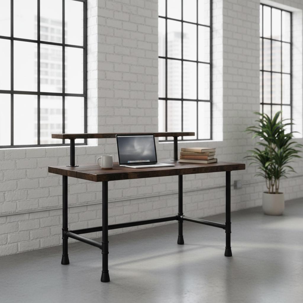RUSTIC WOOD & PIPE DESK with ELEVATED SHELF handmade by TRUMAKE™