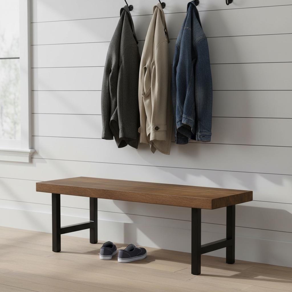 This beautiful Rustic Wood Bench features a unique steel leg frame topped off with a thick 1.5" solid wood surface. The bench is handcrafted from carefully selected timber, chosen for characteristics such as knots, variable grain patterns, saw marks, nail holes, dents and distressed details, as well as many other unique characteristics.