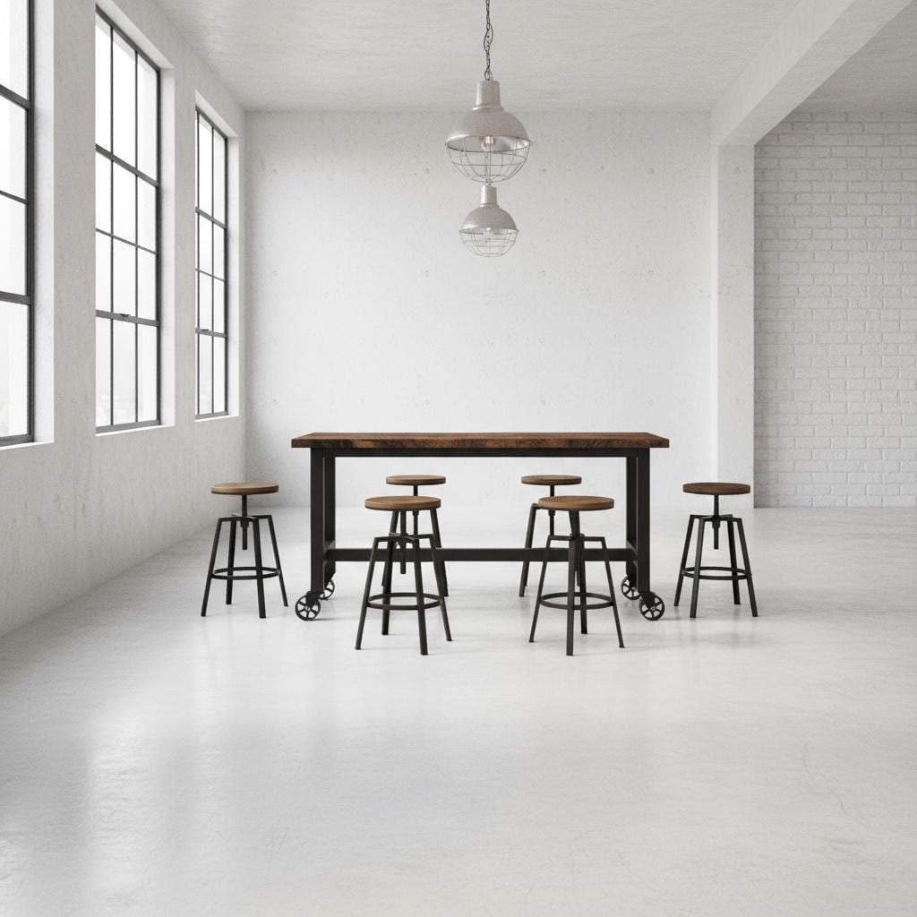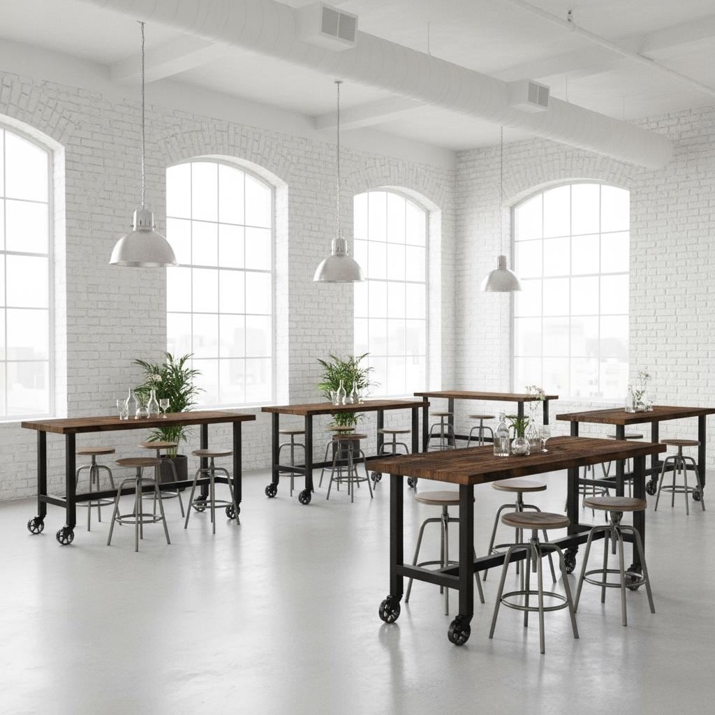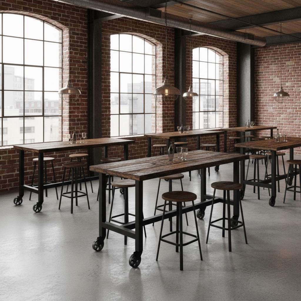 • TRUMAKE™ RUSTIC WOOD & STEEL BAR TABLE with Locking Caster Wheels