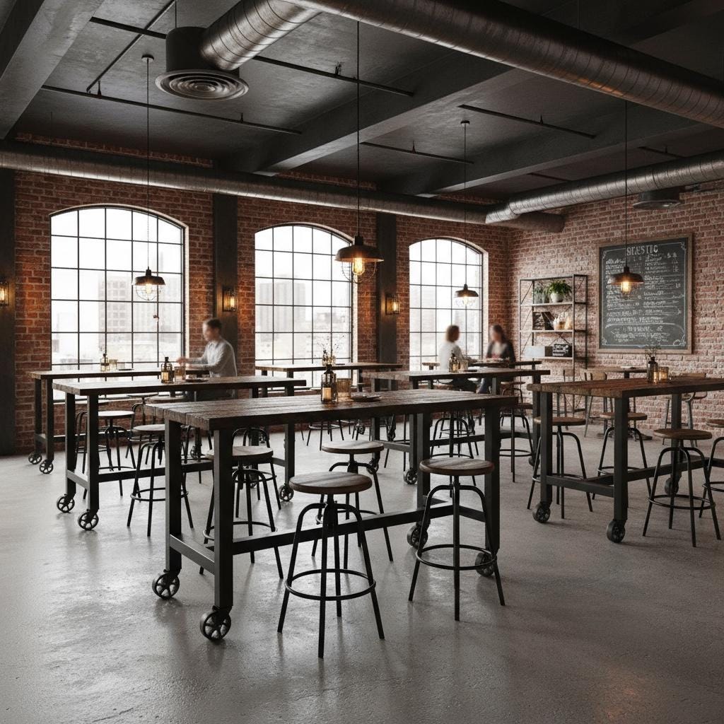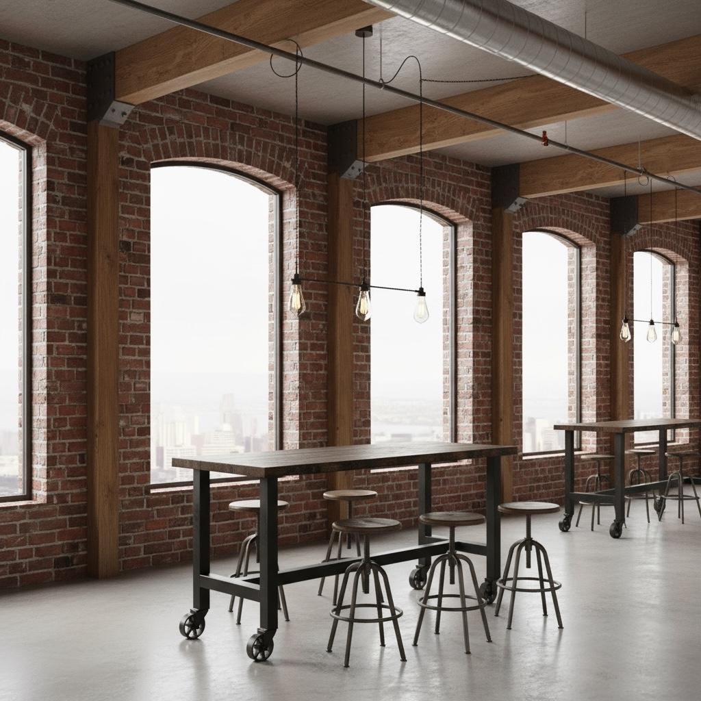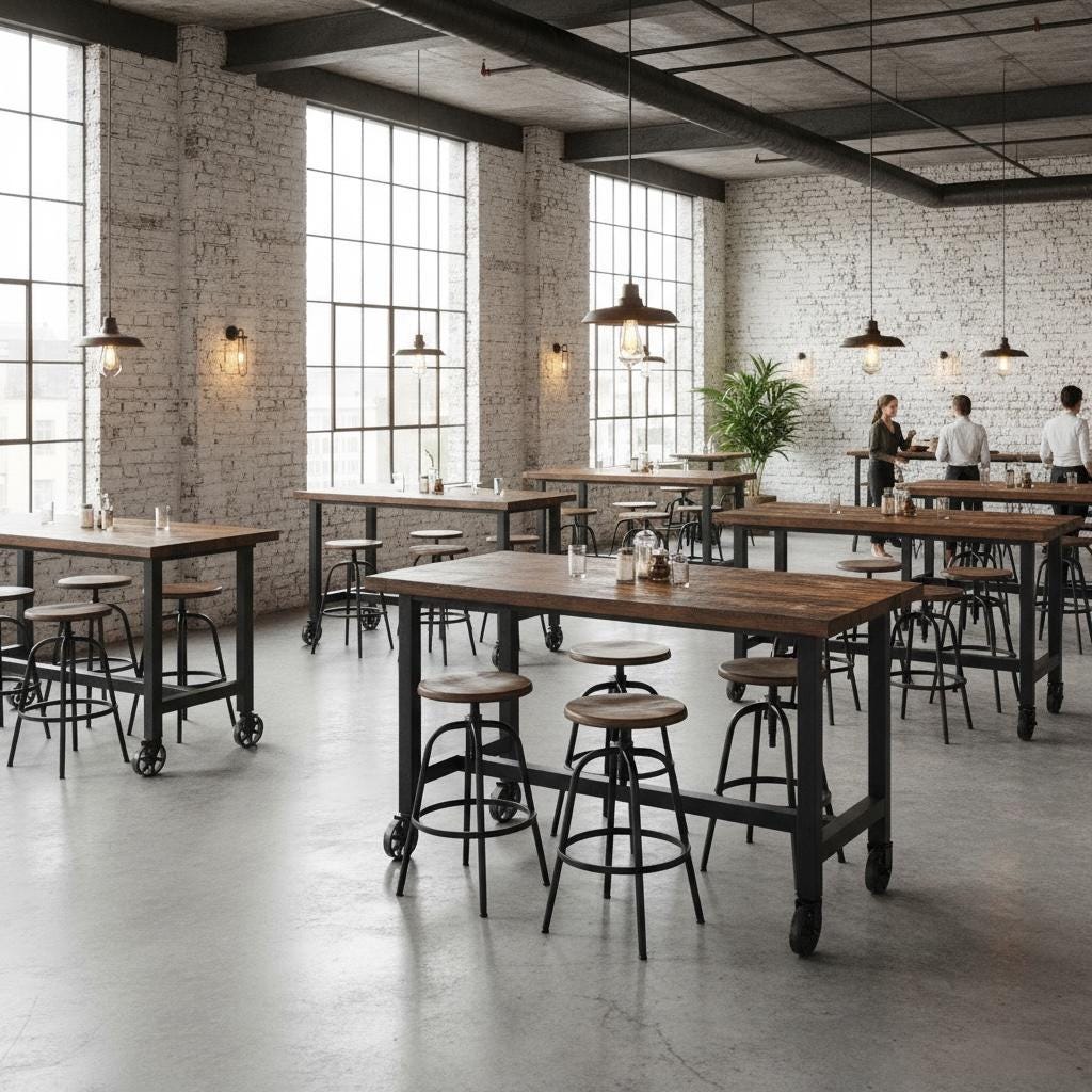 • TRUMAKE™ RUSTIC WOOD & STEEL BAR TABLE with Locking Caster Wheels
