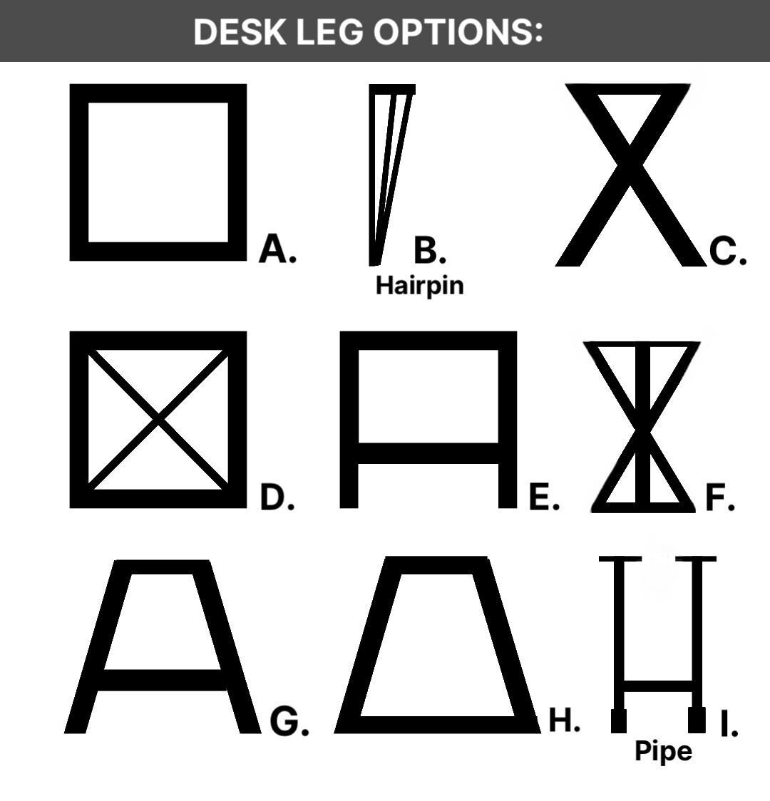 Select the Wood Stain Finish and Leg Style Letter in the drop down menu option.