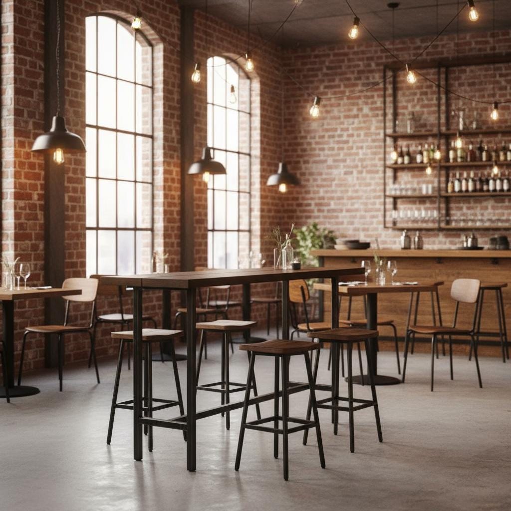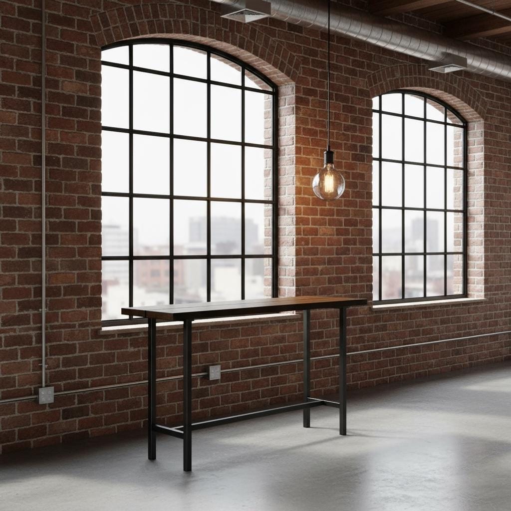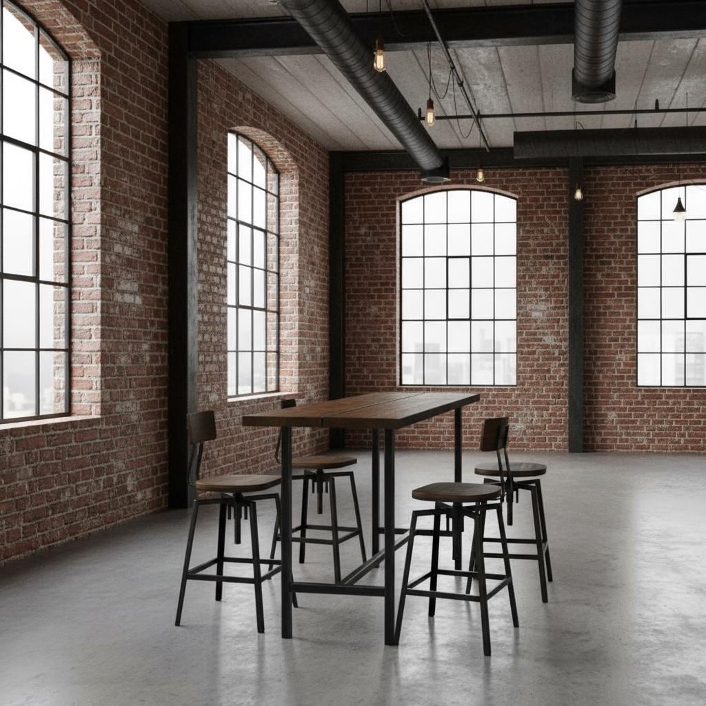 Our beautiful Industrial style Bar Table features a unique steel leg frame topped off with a thick 1.5" solid wood surface. The wood top is handcrafted from carefully selected timber, chosen for characteristics such as knots, variable grain patterns, saw marks, nail holes, dents and distressed details, as well as many other unique characteristics.