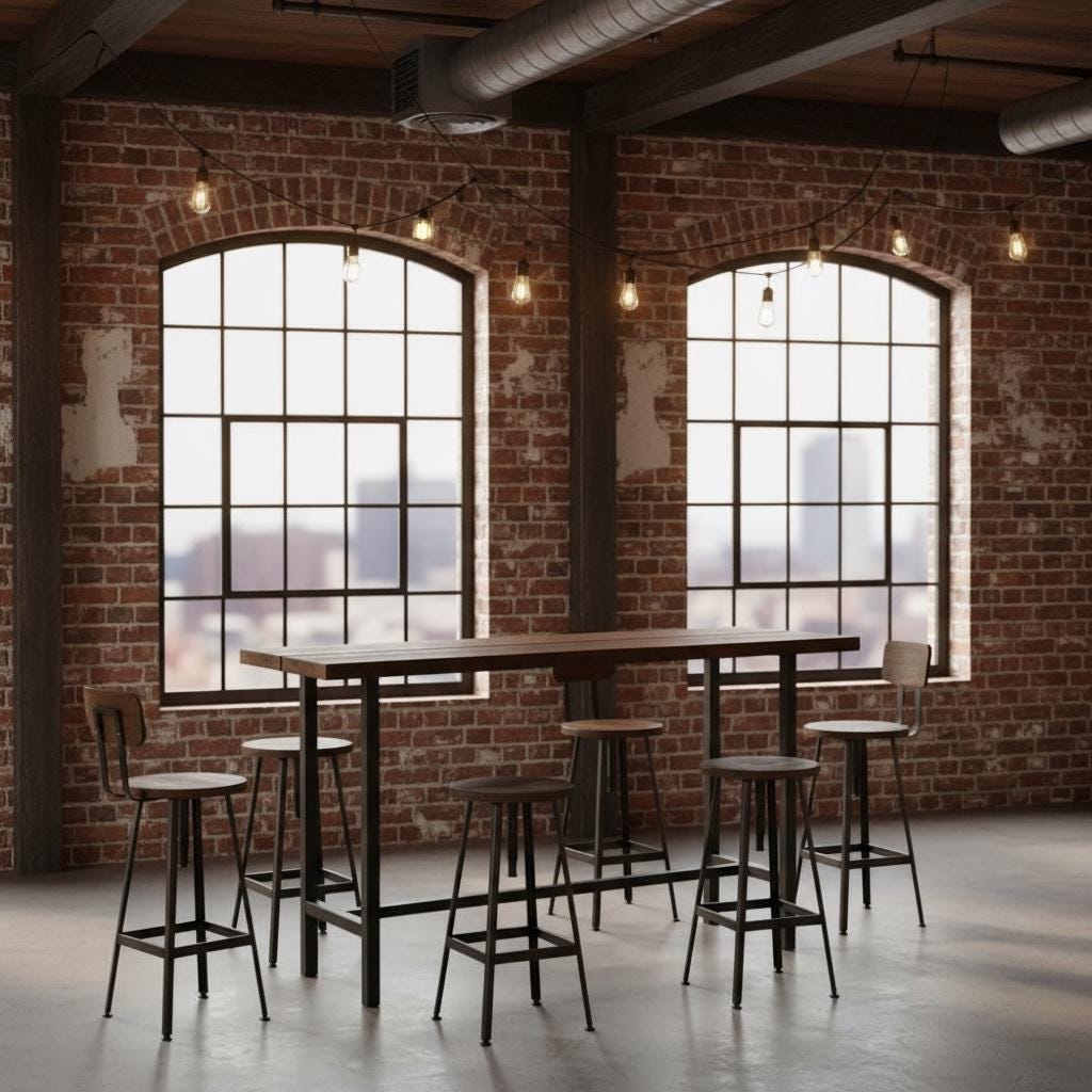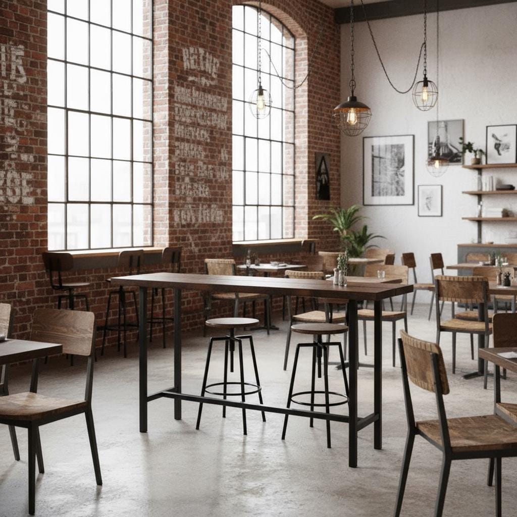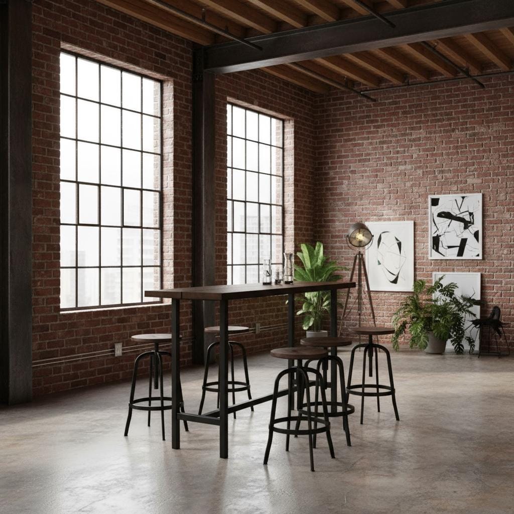 Our beautiful Industrial style Bar Table features a unique steel leg frame topped off with a thick 1.5" solid wood surface. The wood top is handcrafted from carefully selected timber, chosen for characteristics such as knots, variable grain patterns, saw marks, nail holes, dents and distressed details, as well as many other unique characteristics.