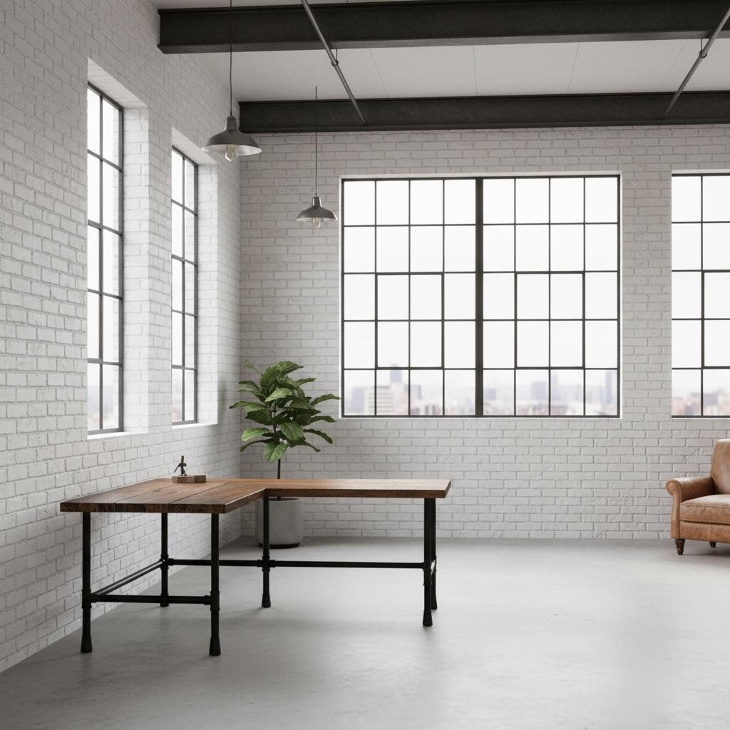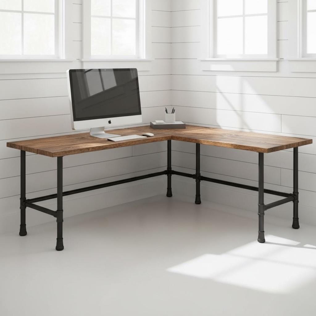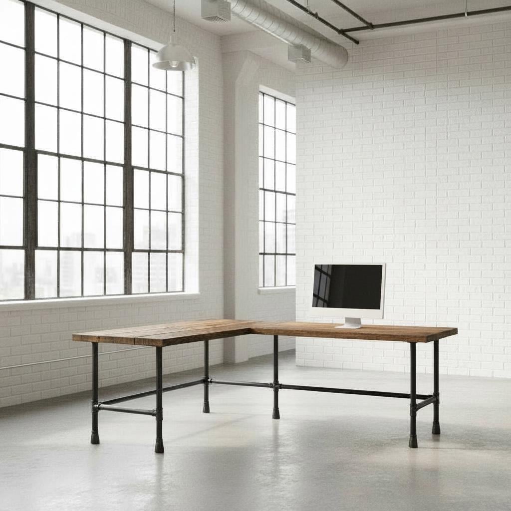 RUSTIC L-SHAPED WOOD & PIPE DESK