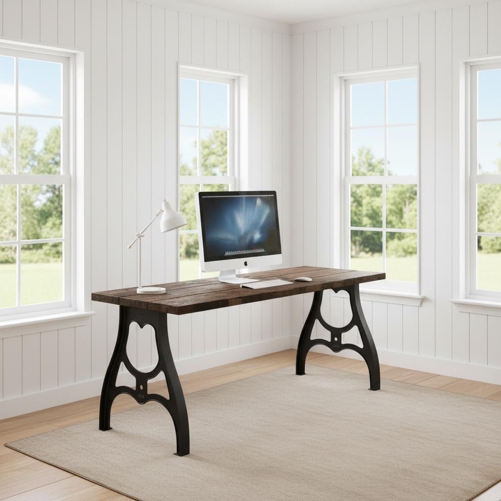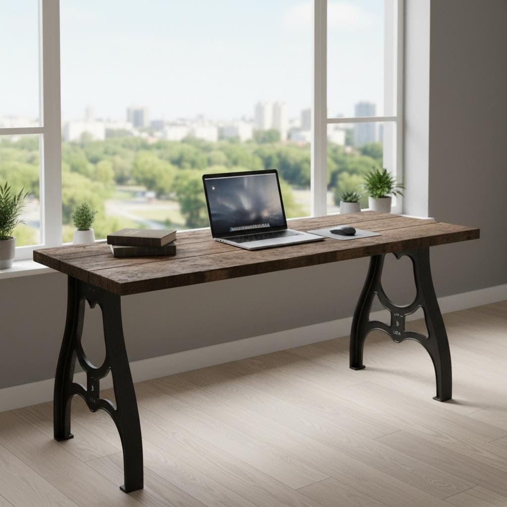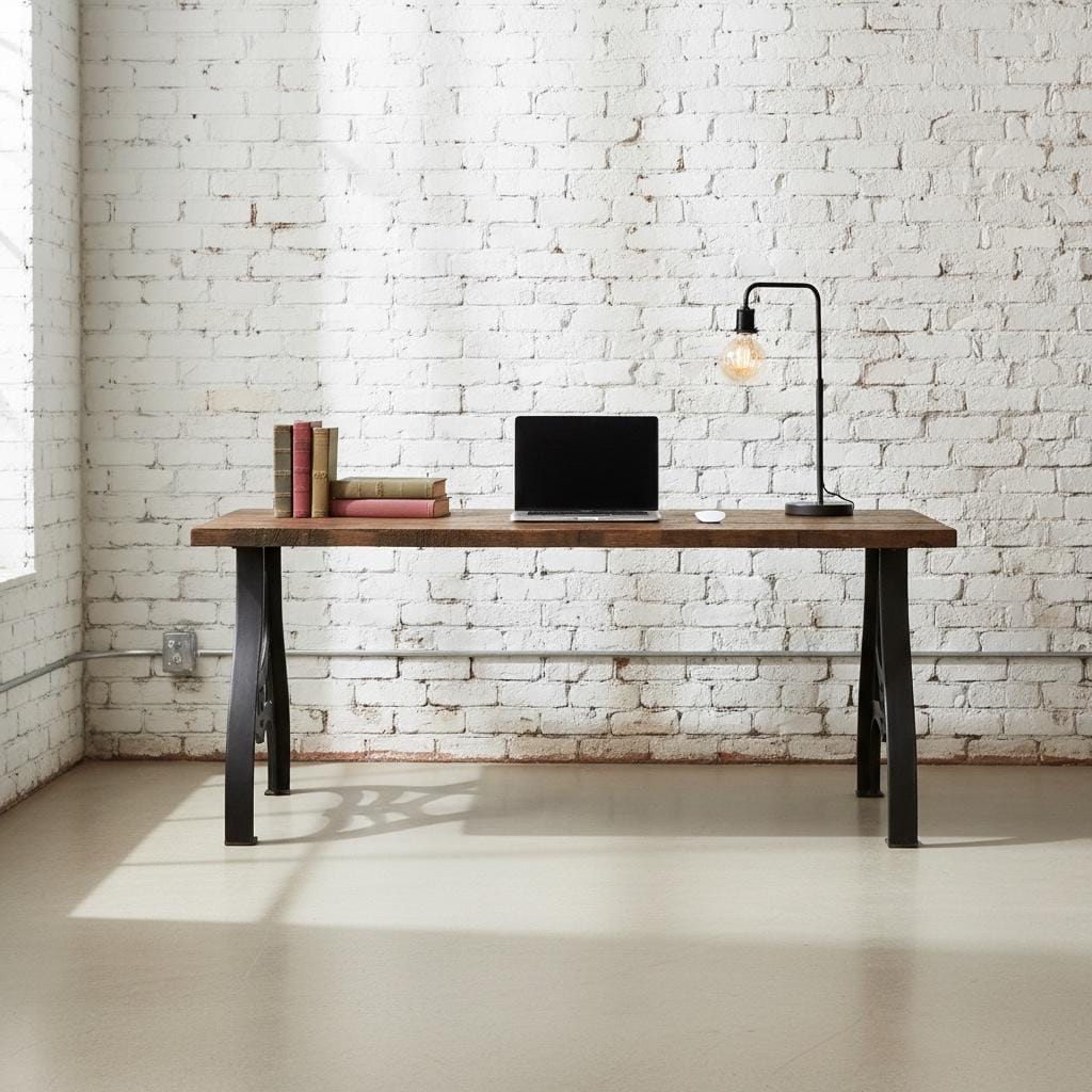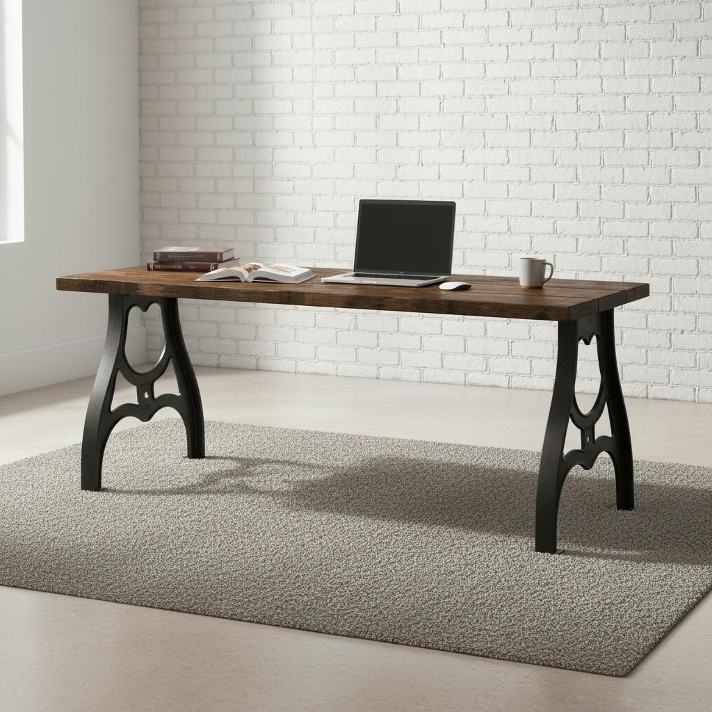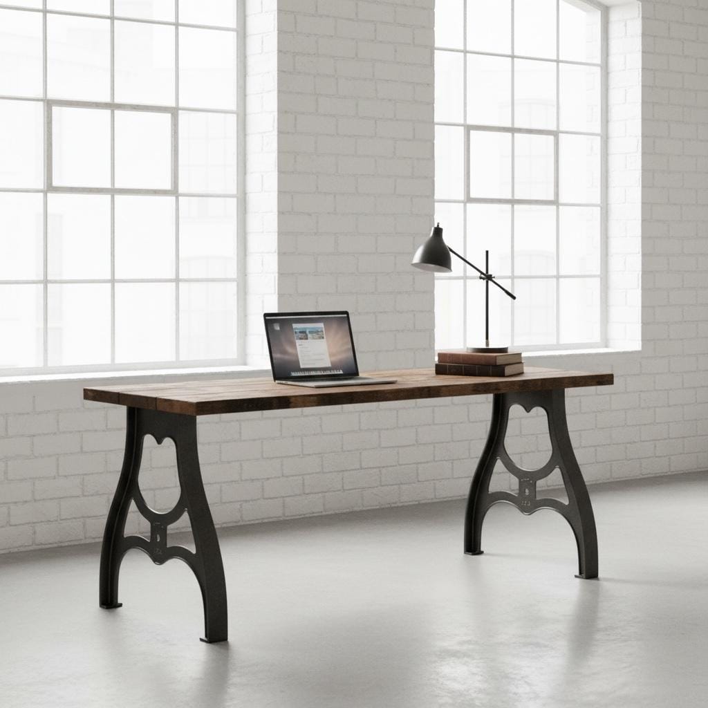 Our beautiful vintage style Desk features industrial cast metal aluminum legs topped off with a thick 1.5" solid wood surface.