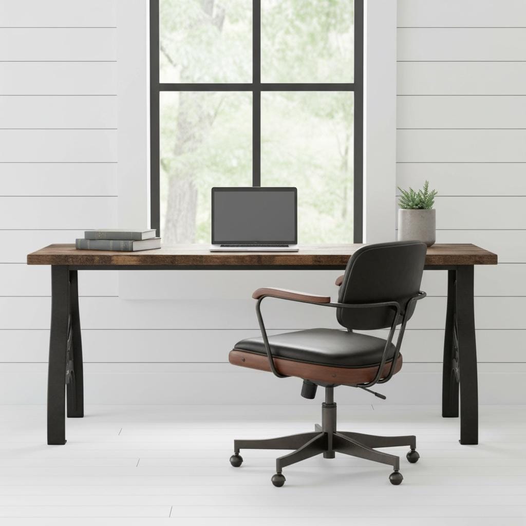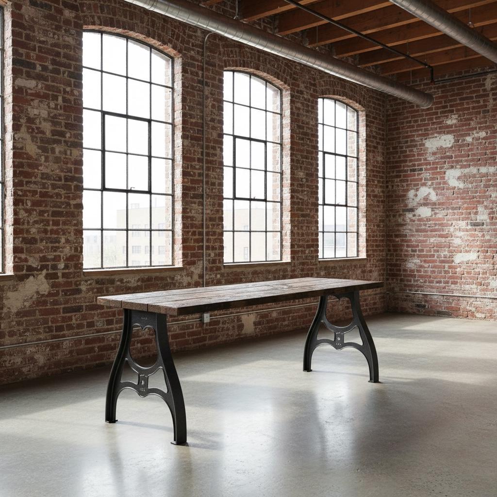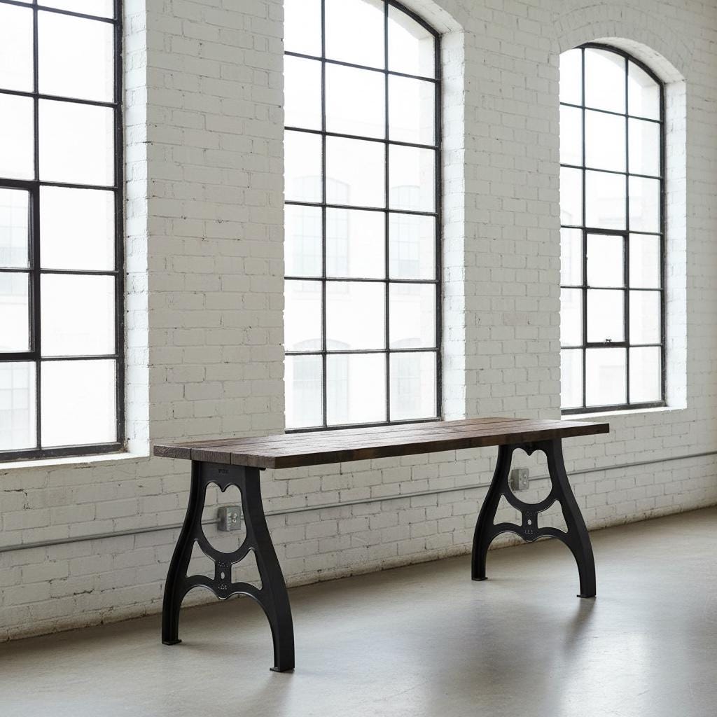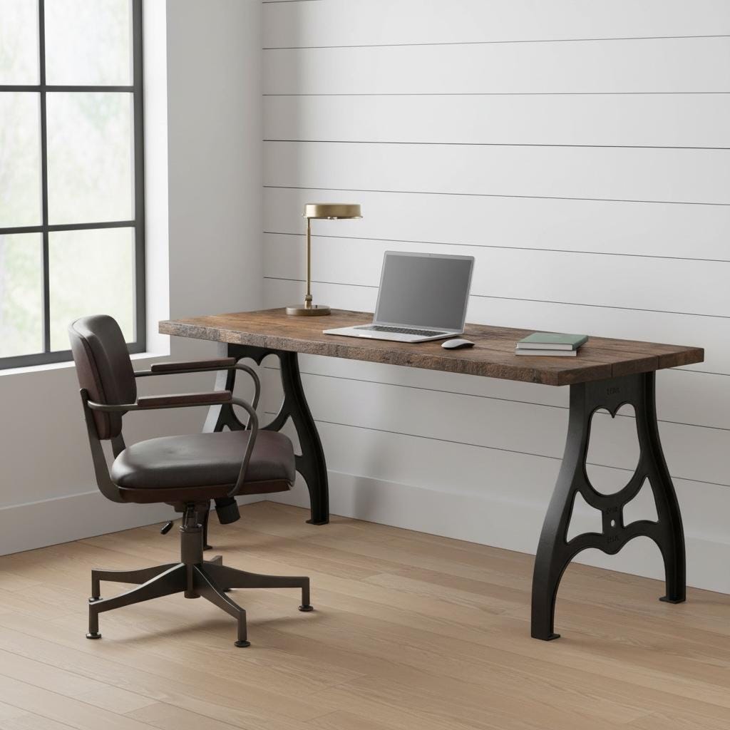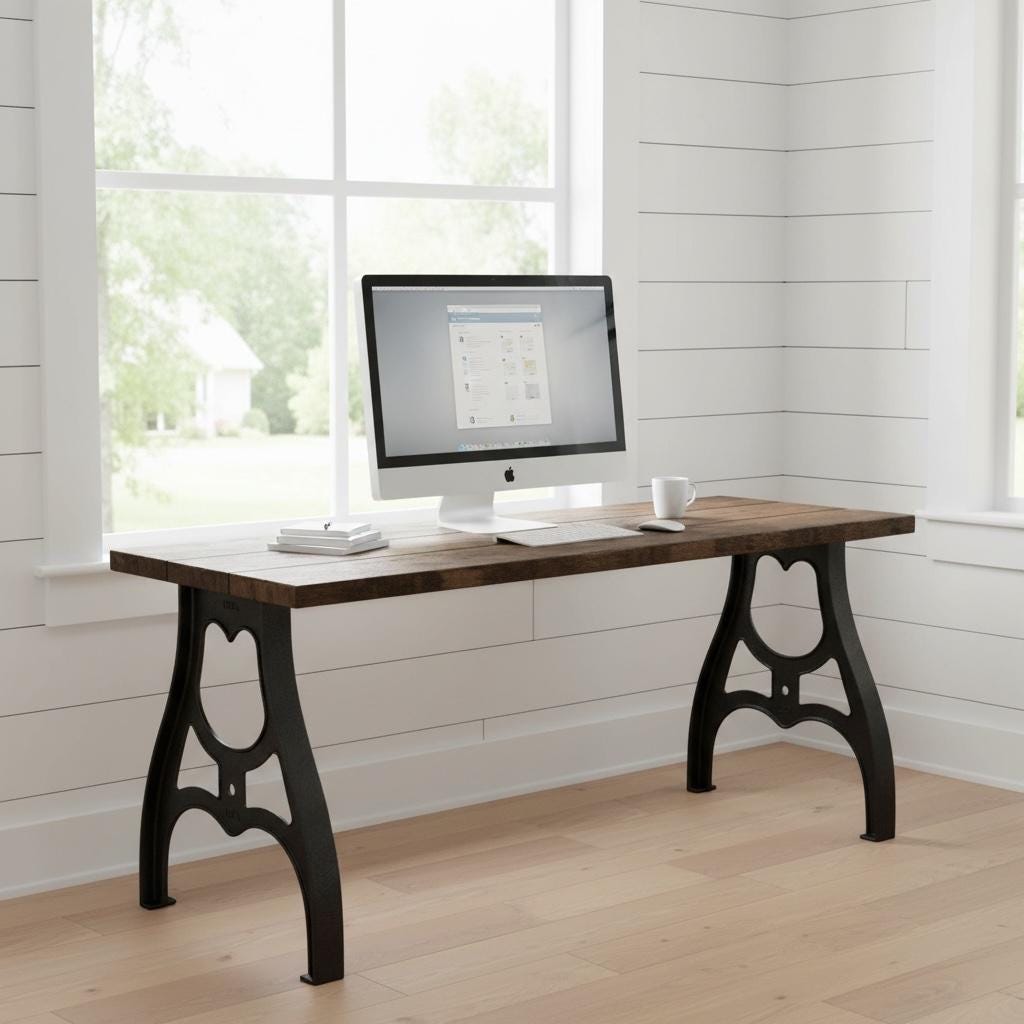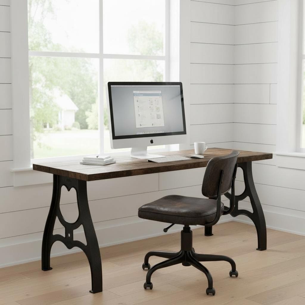 Our beautiful vintage style Desk features industrial cast metal aluminum legs topped off with a thick 1.5" solid wood surface.