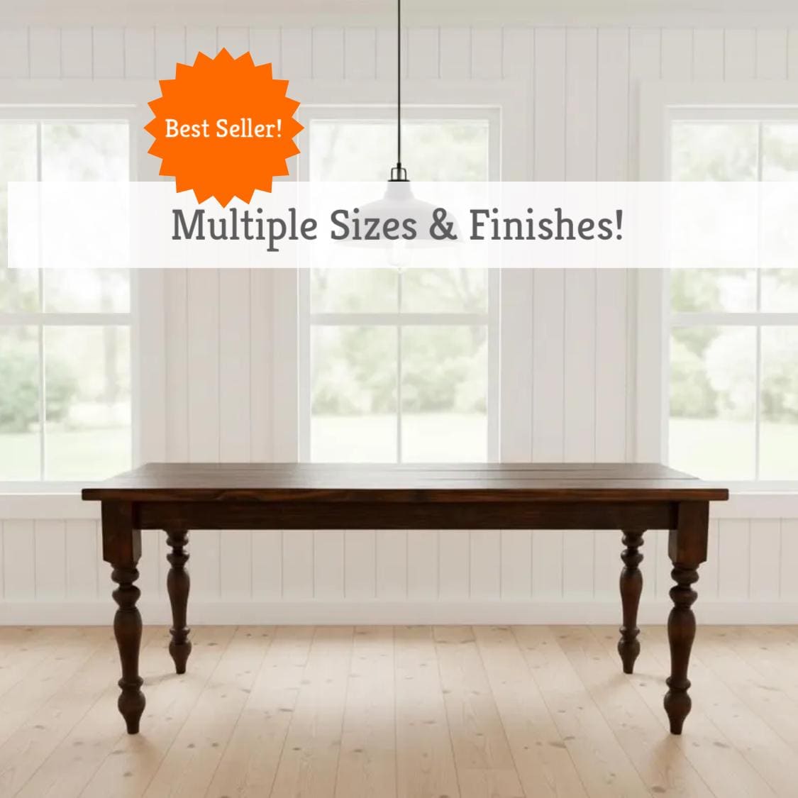 This beautiful Rustic Wood Table features solid wood Legs with a thick 1.5" solid wood surface. The table top is handcrafted from carefully selected timber, chosen for characteristics such as knots, variable grain patterns, saw marks, nail holes, dents and distressed details, as well as many other unique characteristics.