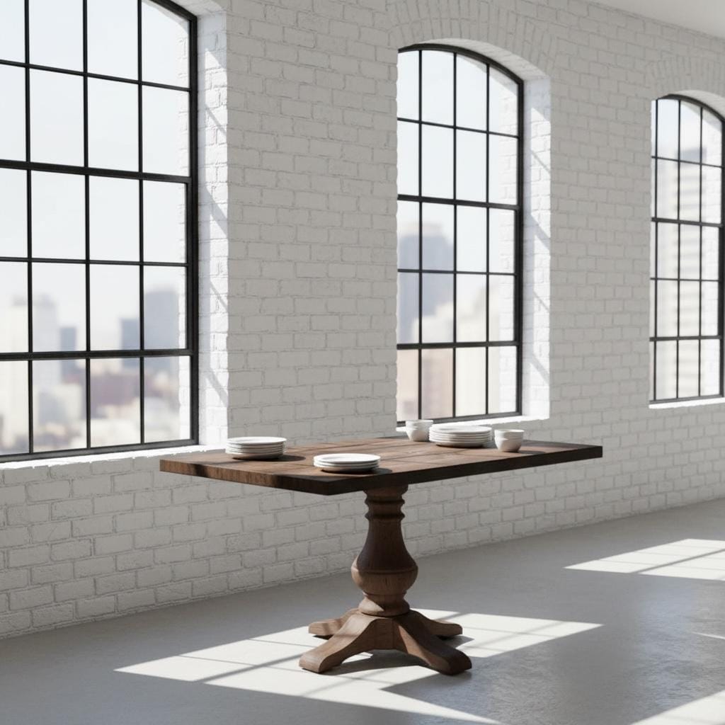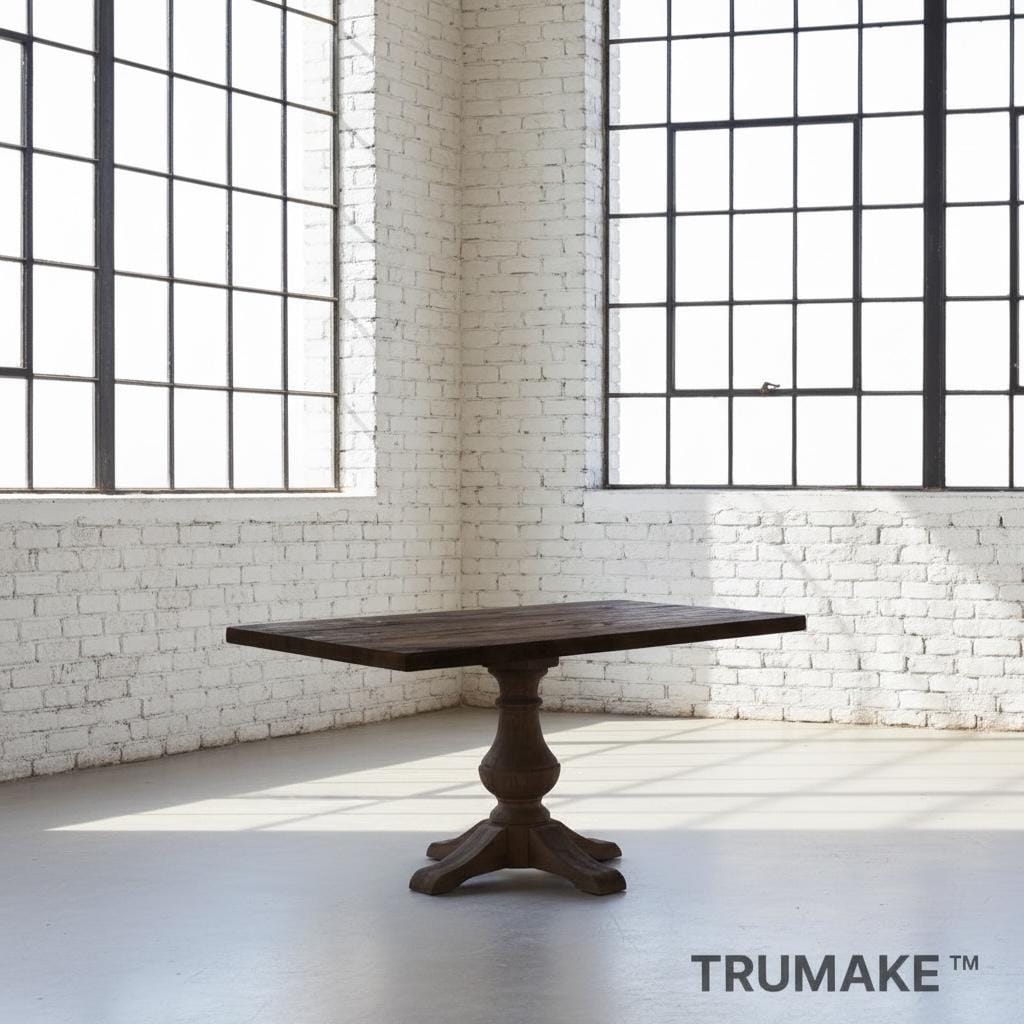 • TRUMAKE™ RUSTIC WOOD PEDESTAL TABLE