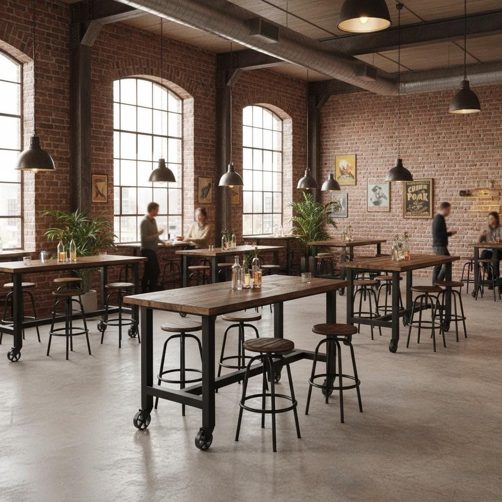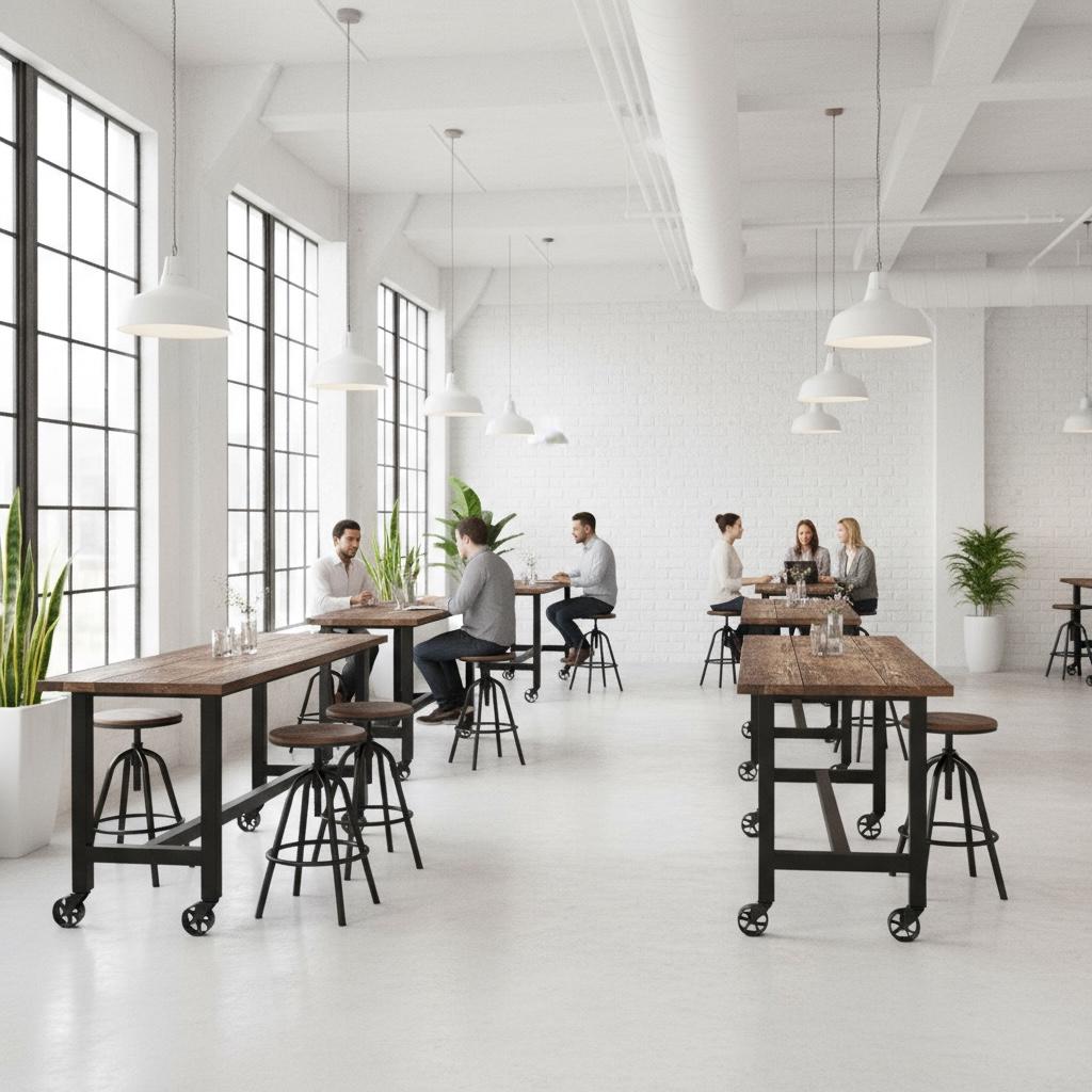 • TRUMAKE™ RUSTIC WOOD & STEEL BAR TABLE with Locking Caster Wheels