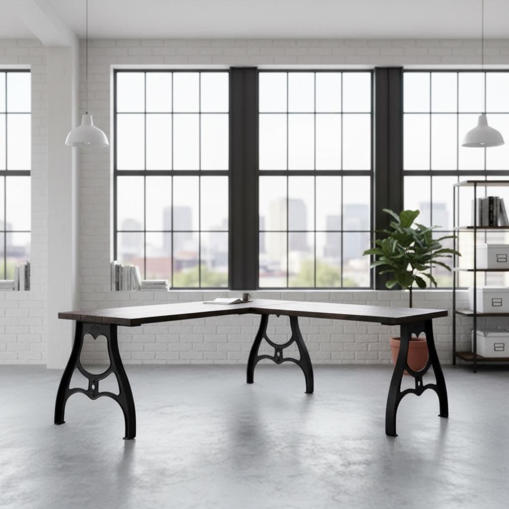 HANDCRAFTED RUSTIC WOOD & STEEL L-SHAPED DESK