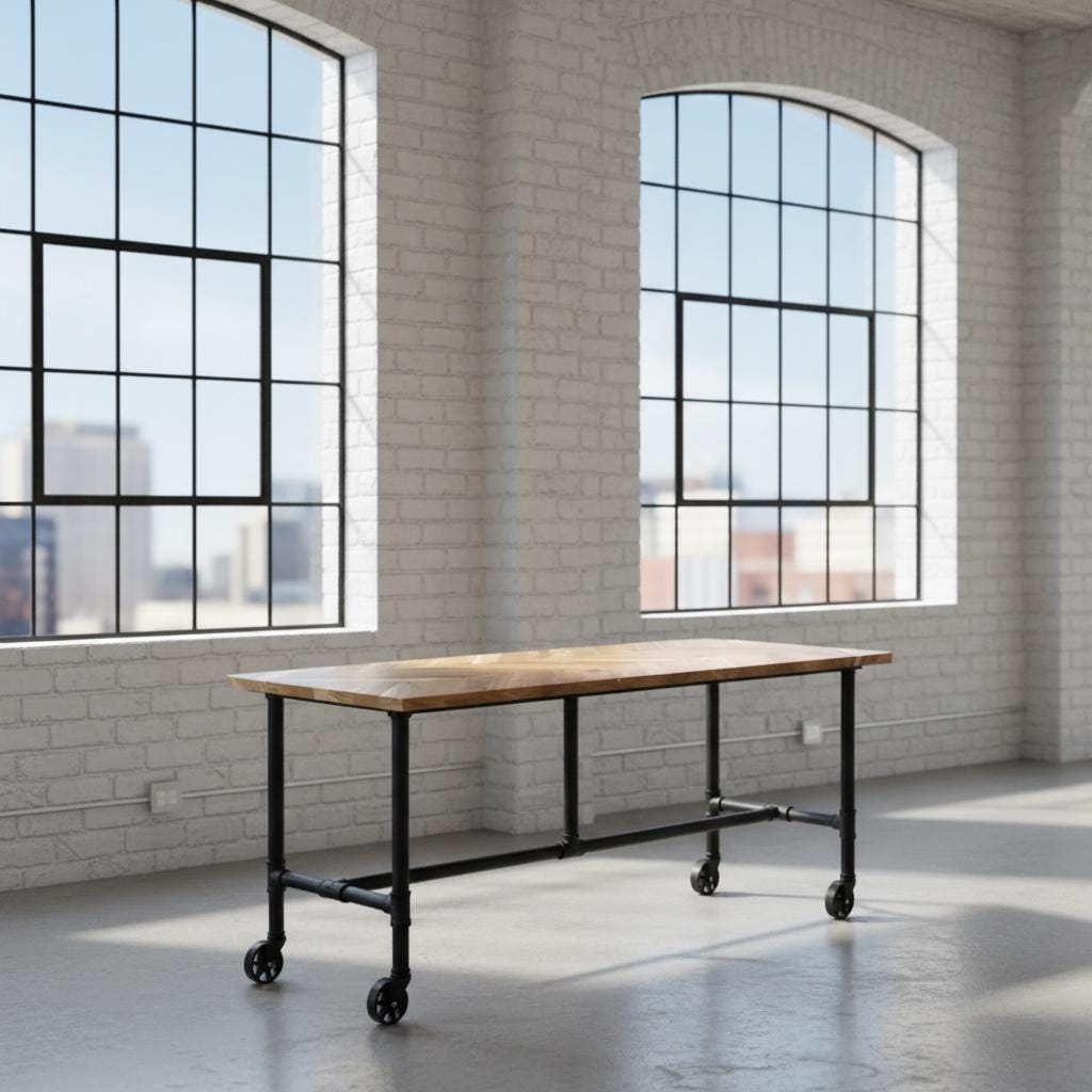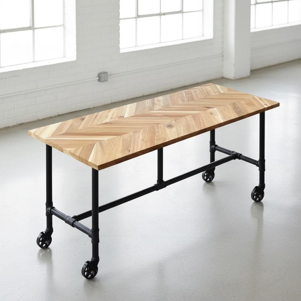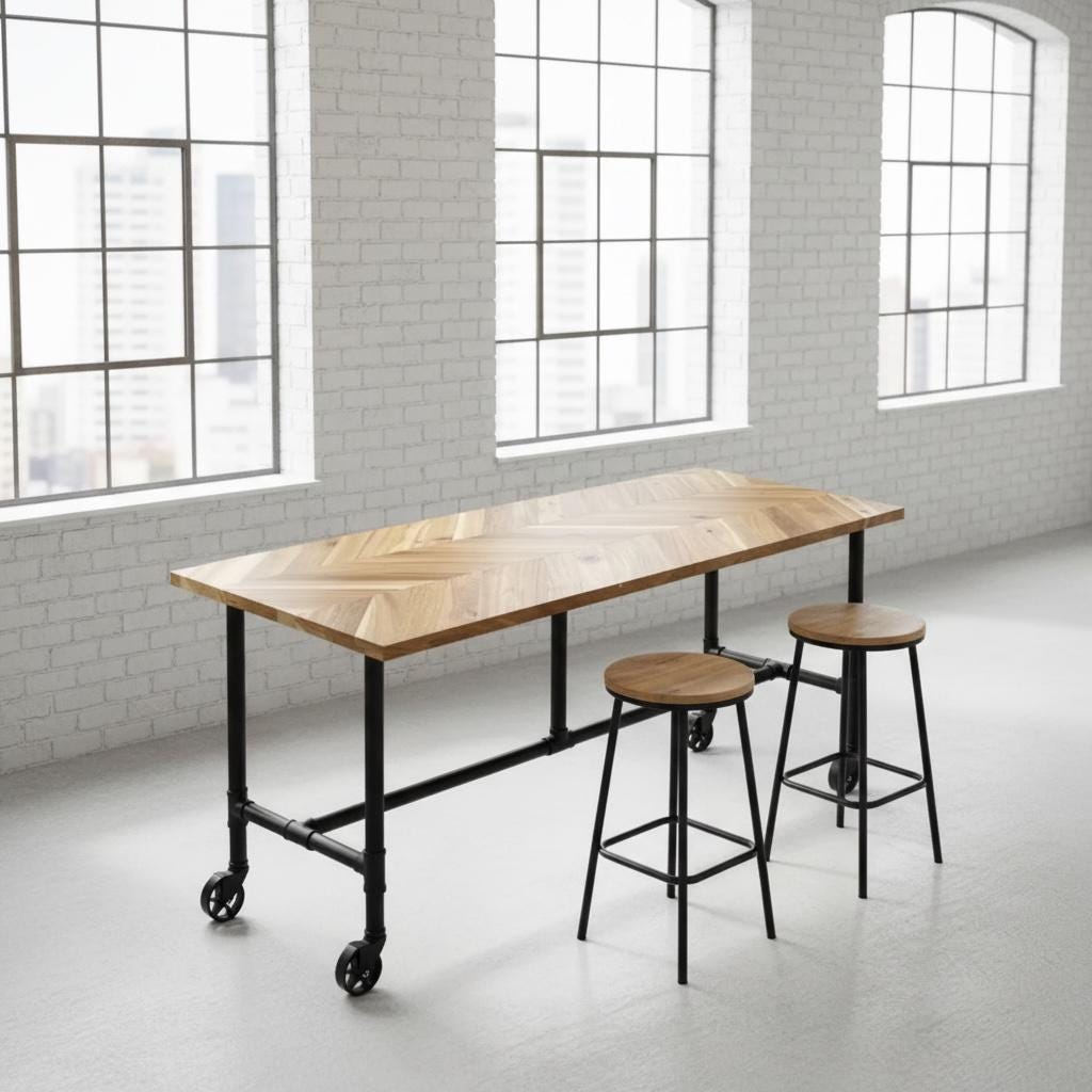 • TRUMAKE™ CHEVRON WOOD & PIPE BAR TABLE with Locking Swivel Caster Wheels included