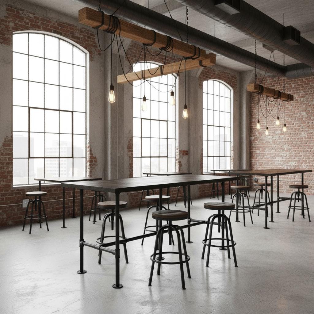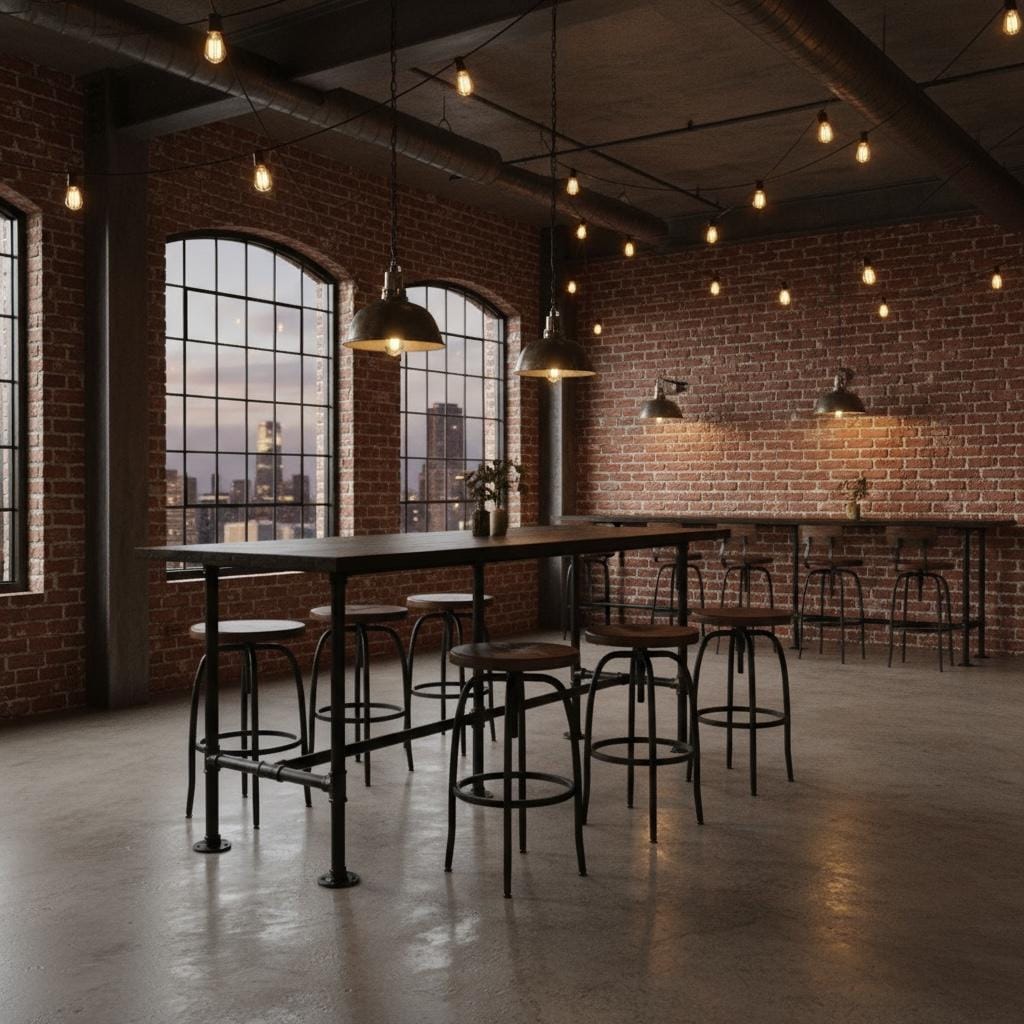 • TRUMAKE™ RUSTIC WOOD & STEEL BAR TABLE