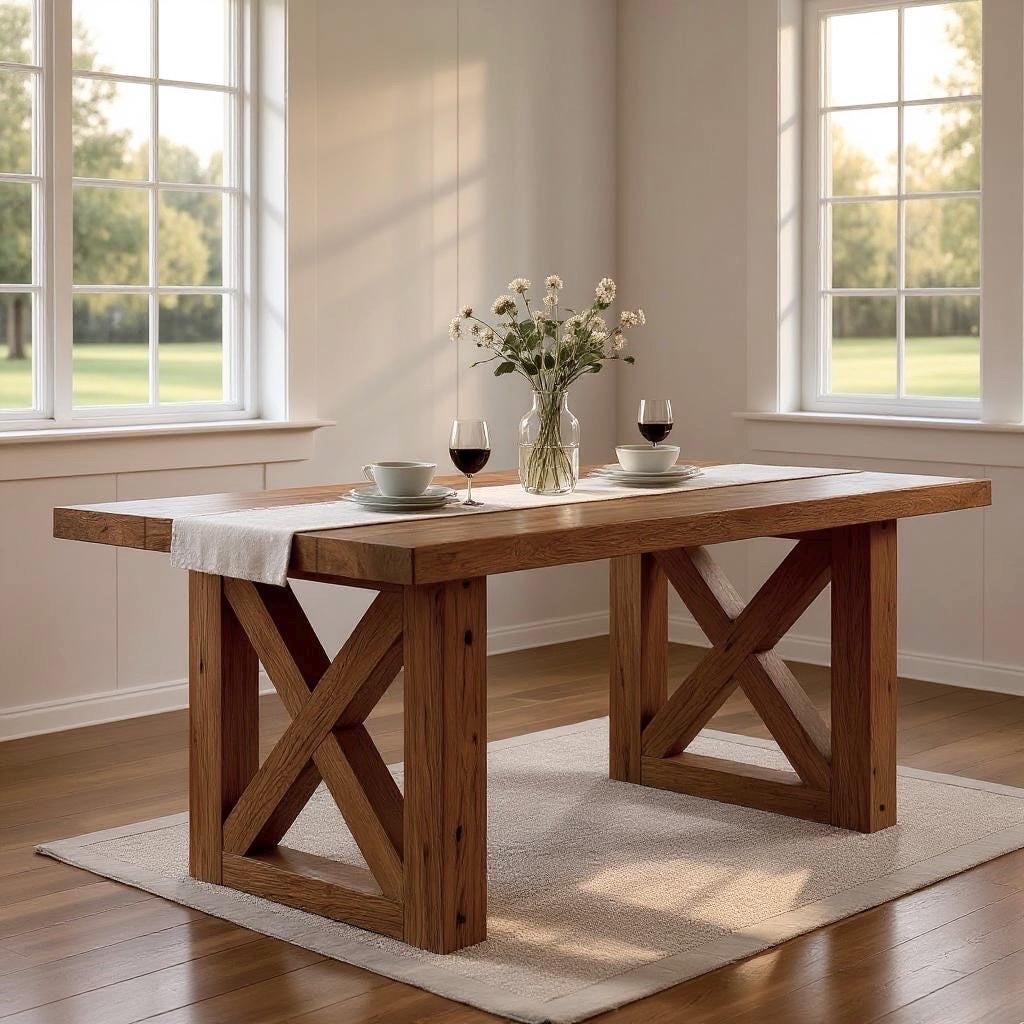 Our beautiful Rustic Wood Table features solid wood Legs with a 1.5” thick solid wood surface. The table top is handcrafted from carefully selected timber, chosen for characteristics such as knots, variable grain patterns, saw marks, nail holes, dents and distressed details, as well as many other unique characteristics.