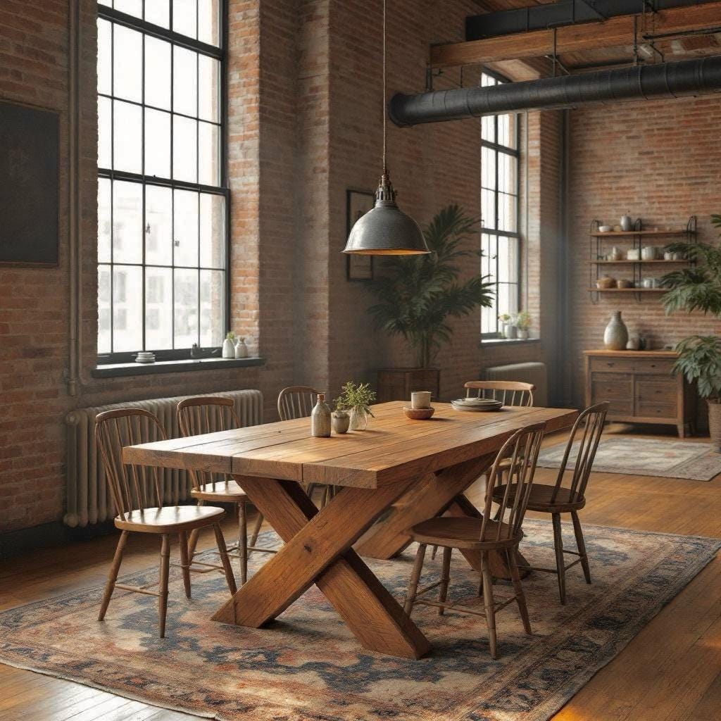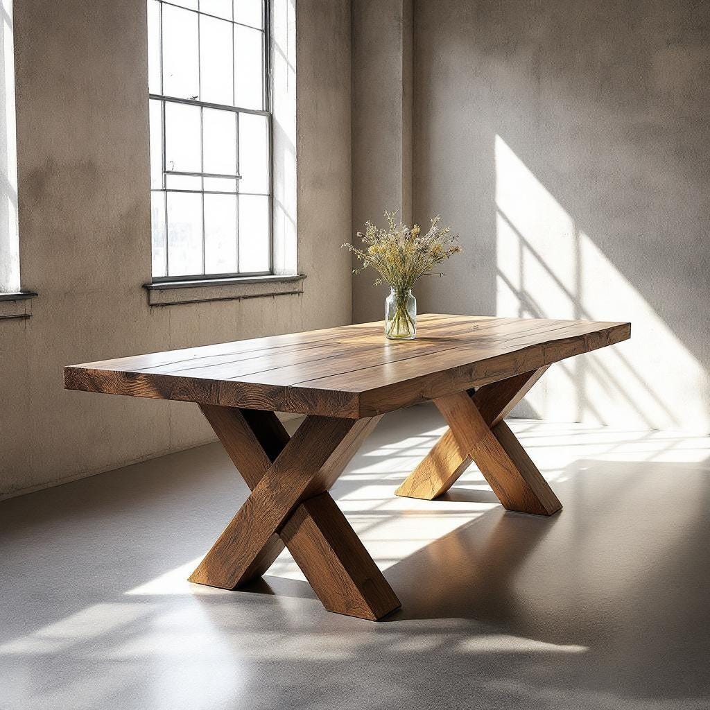 Our beautiful Rustic Wood Table features solid wood Legs with a thick solid wood surface. The table top is handcrafted from carefully selected timber, chosen for characteristics such as knots, variable grain patterns, saw marks, nail holes, dents and distressed details, as well as many other unique characteristics.