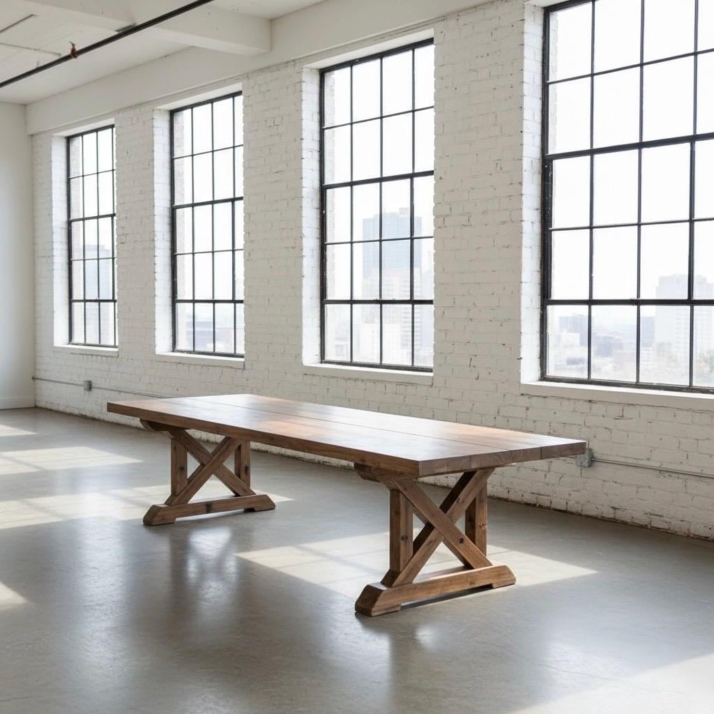 Our beautiful Rustic Wood Table features solid wood Legs with a thick solid wood surface. The table top is handcrafted from carefully selected timber, chosen for characteristics such as knots, variable grain patterns, saw marks, nail holes, dents and distressed details, as well as many other unique characteristics.