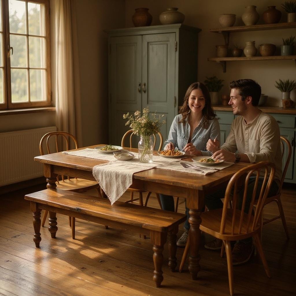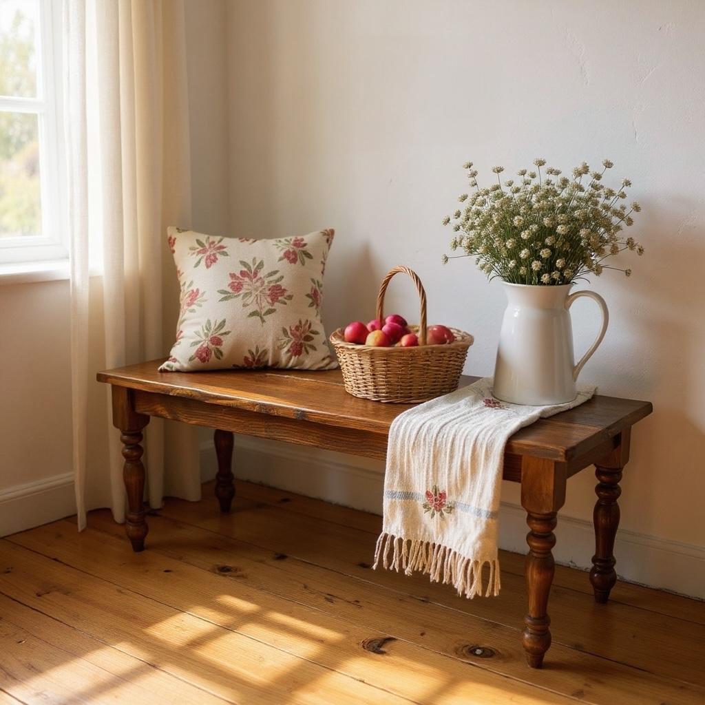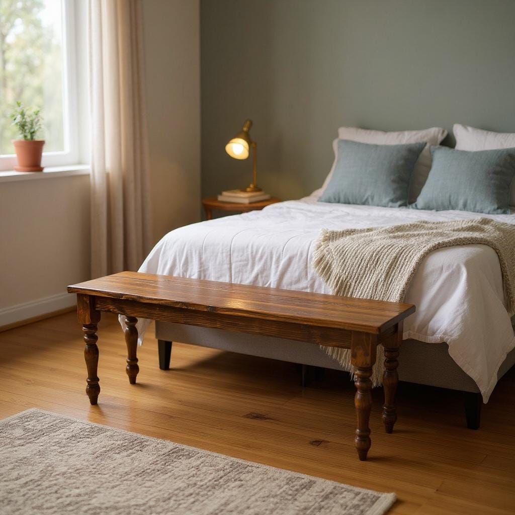 Our beautiful Rustic Wood Farmhouse Bench features solid wood Legs with a thick solid wood surface. The bench is handcrafted from carefully selected timber, chosen for characteristics such as knots, variable grain patterns, saw marks, nail holes, dents and distressed details, as well as many other unique characteristics.