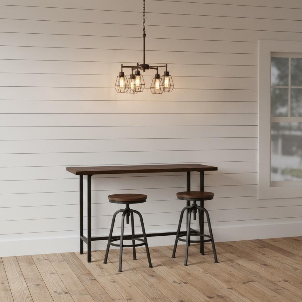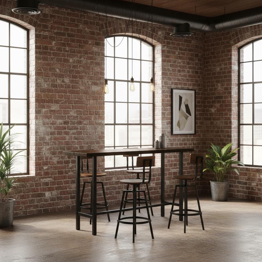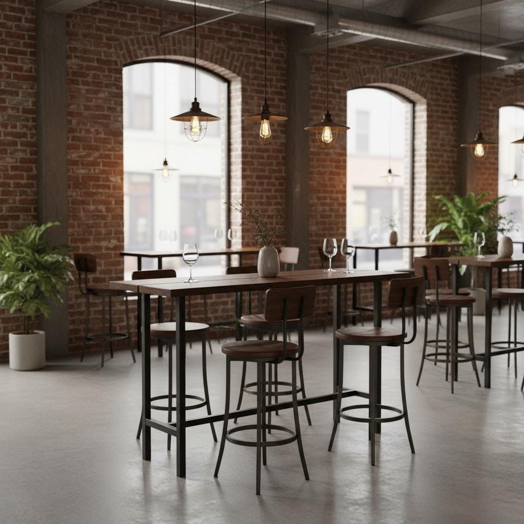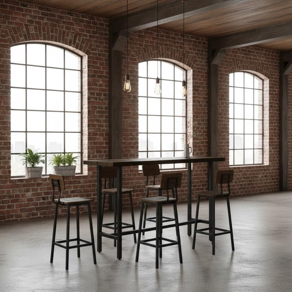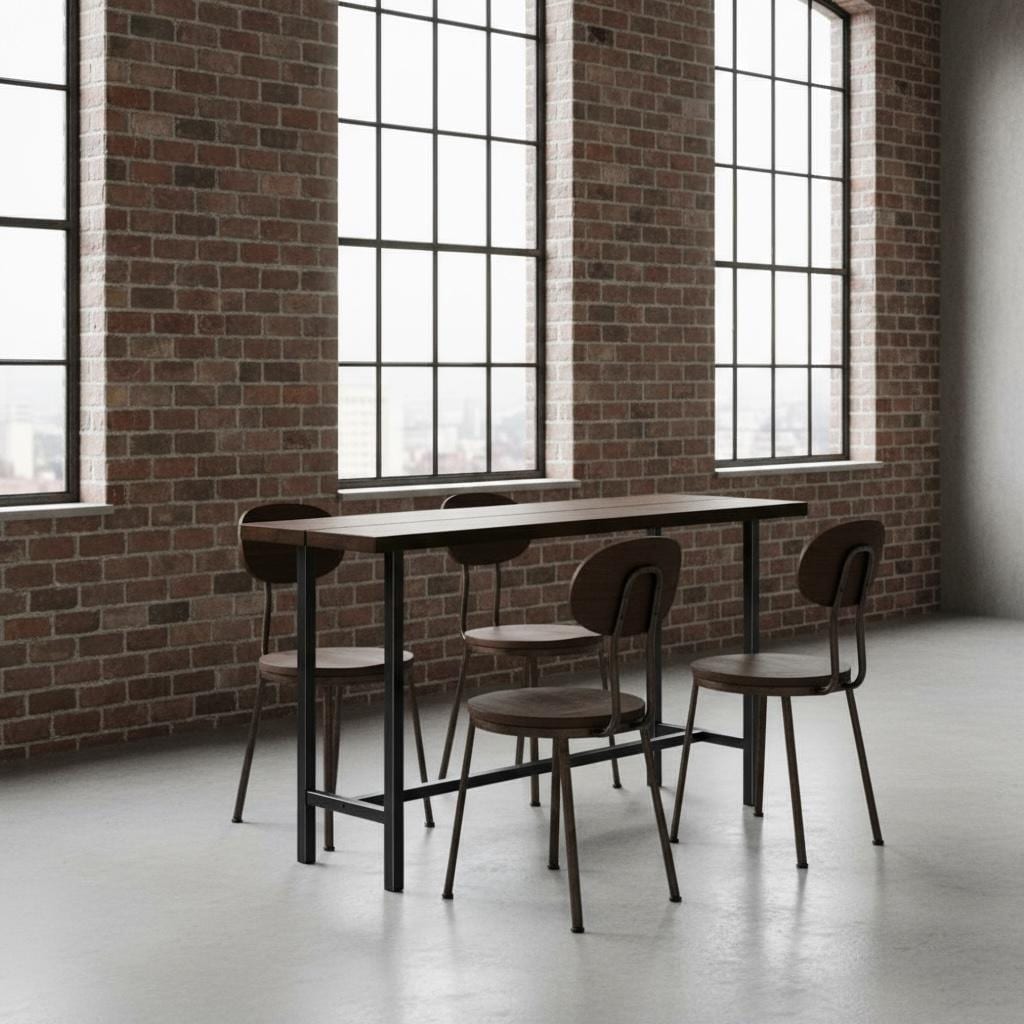 Our beautiful Industrial style Bar Table features a unique steel leg frame topped off with a thick 1.5" solid wood surface.