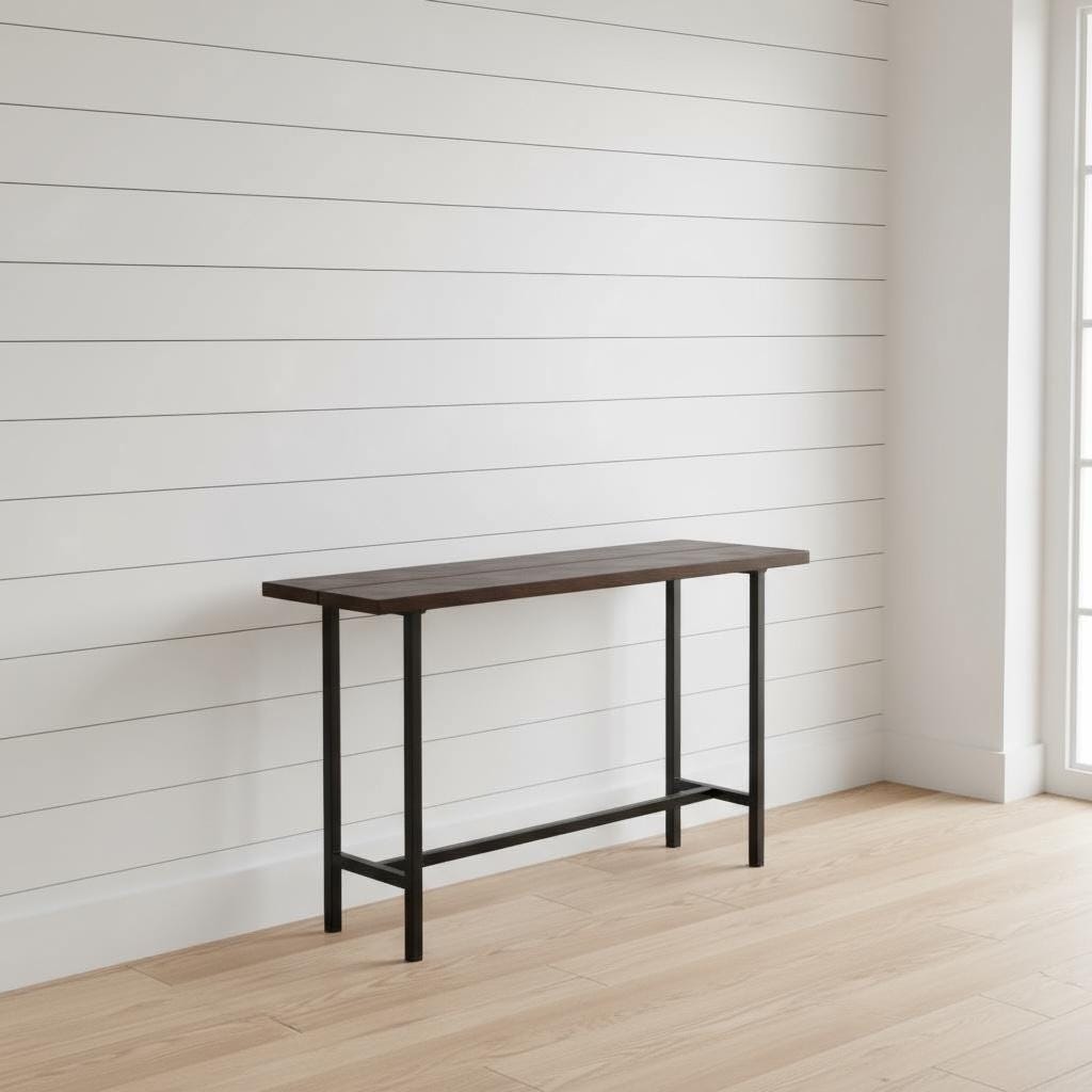 Coffee Bar Rustic Wood Table: Handcrafted, Industrial Steel Frame, Custom Sizes