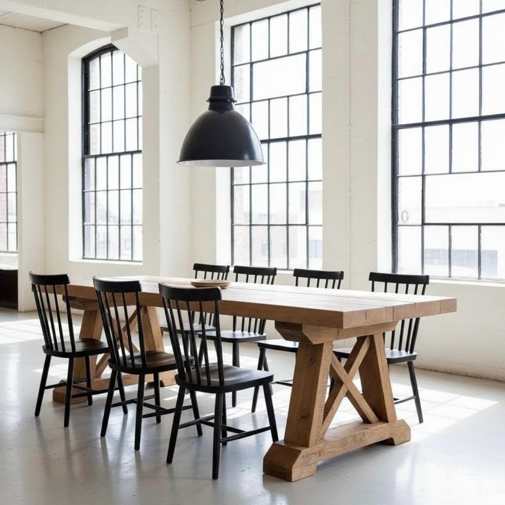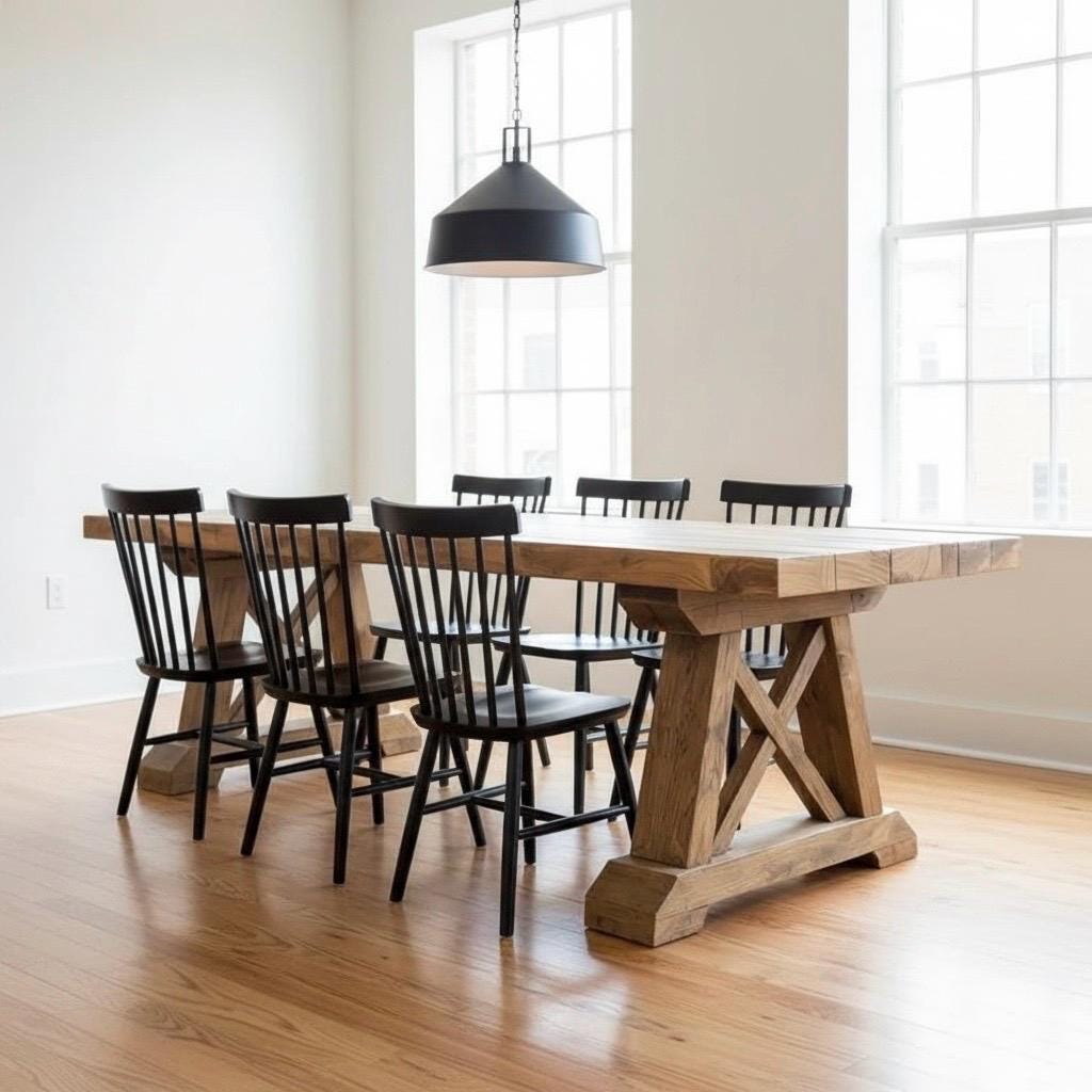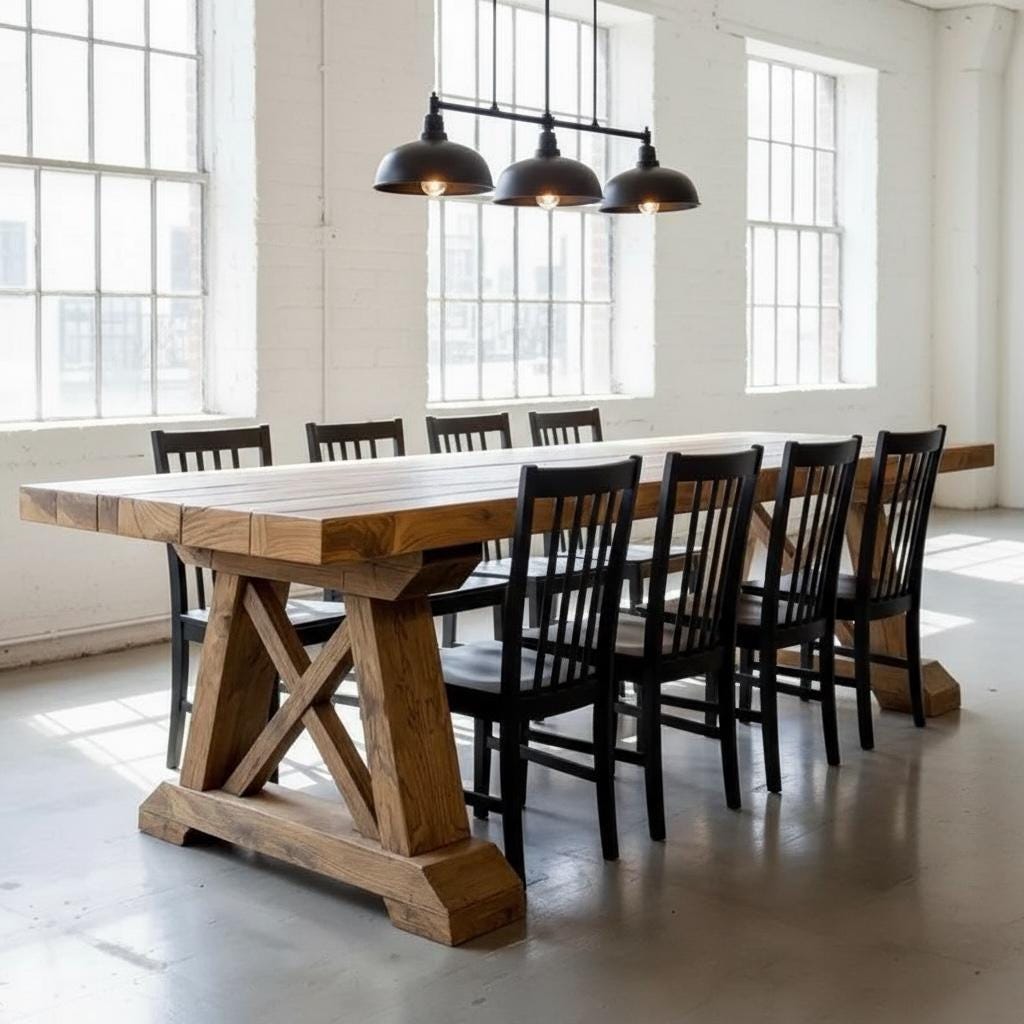 HANDCRAFTED WOOD TABLE | Thick Wood Rustic Dining Table | Harvest Dining Table | Rugged Wood Table Heavy Table | Kitchen Farm Table |