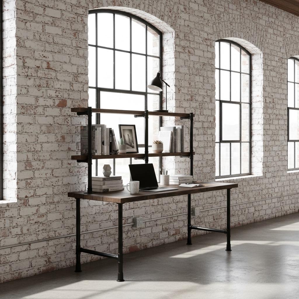 This beautiful Rustic Wood Desk features industrial steel pipe legs topped off with a thick 1.5" solid wood surface.