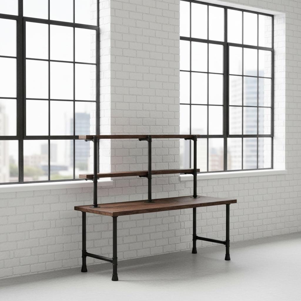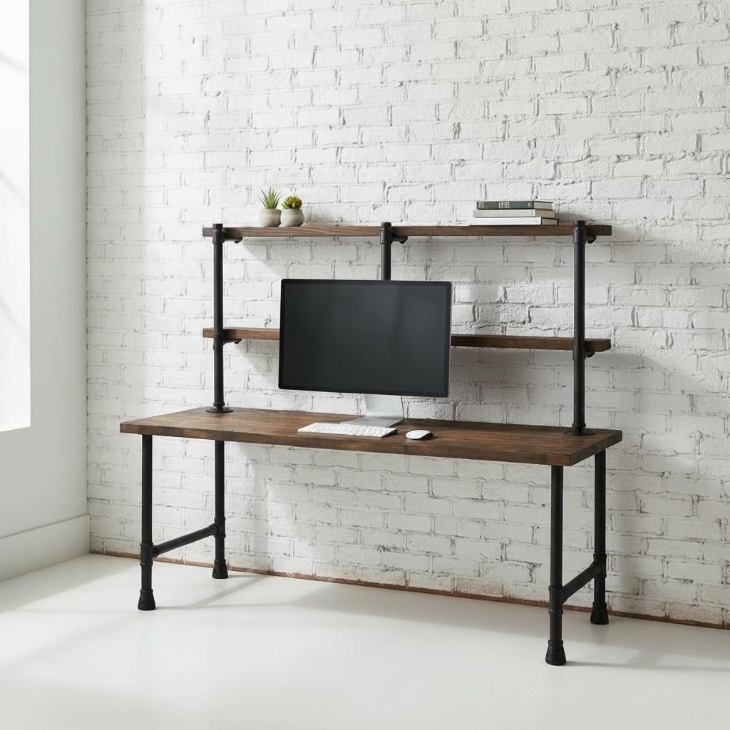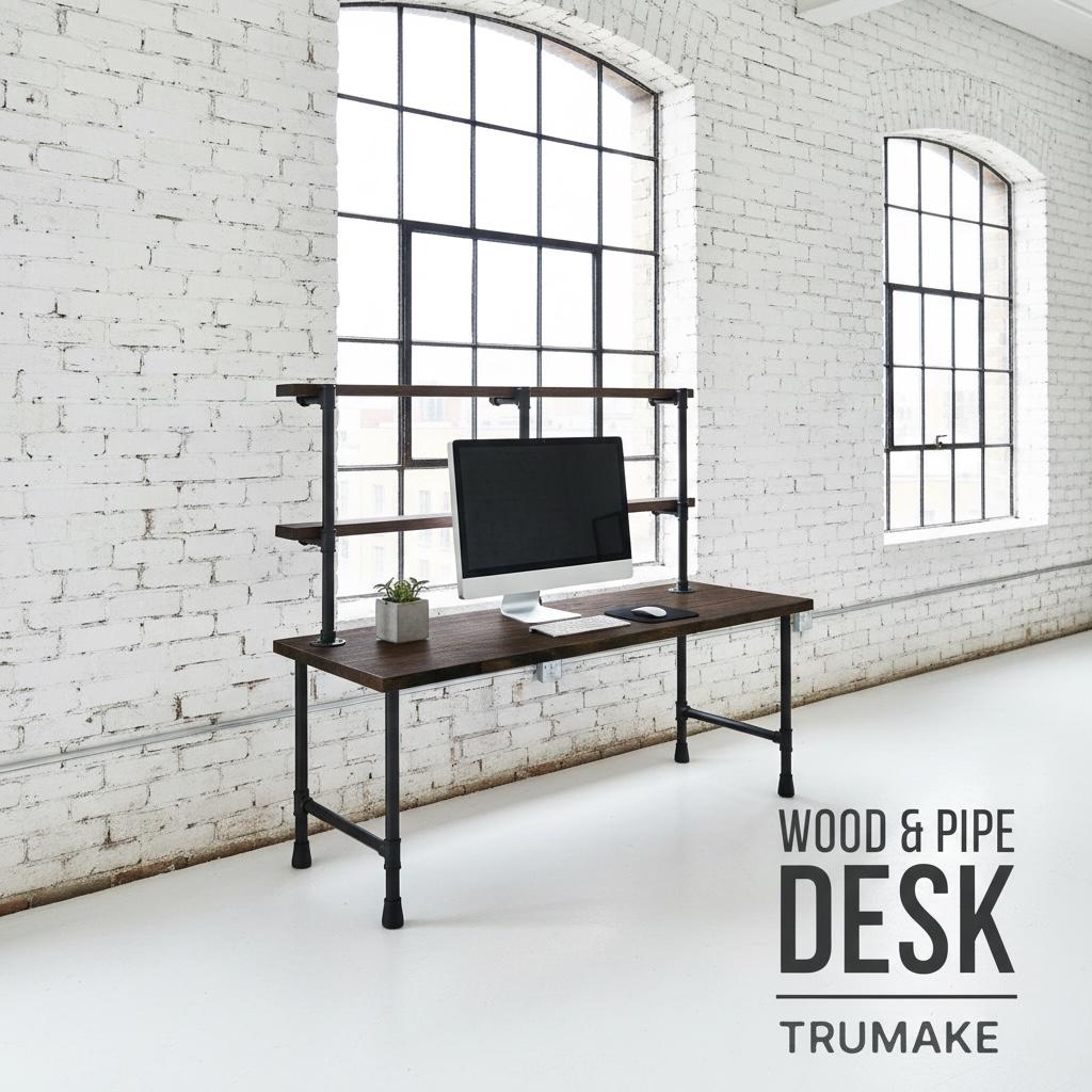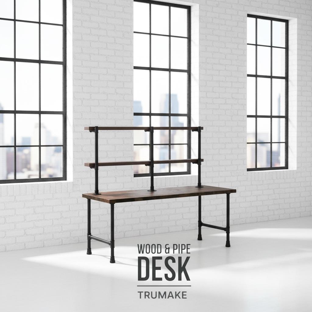 RUSTIC WOOD & PIPE DESK with ELEVATED SHELVES handmade by TRUMAKE™