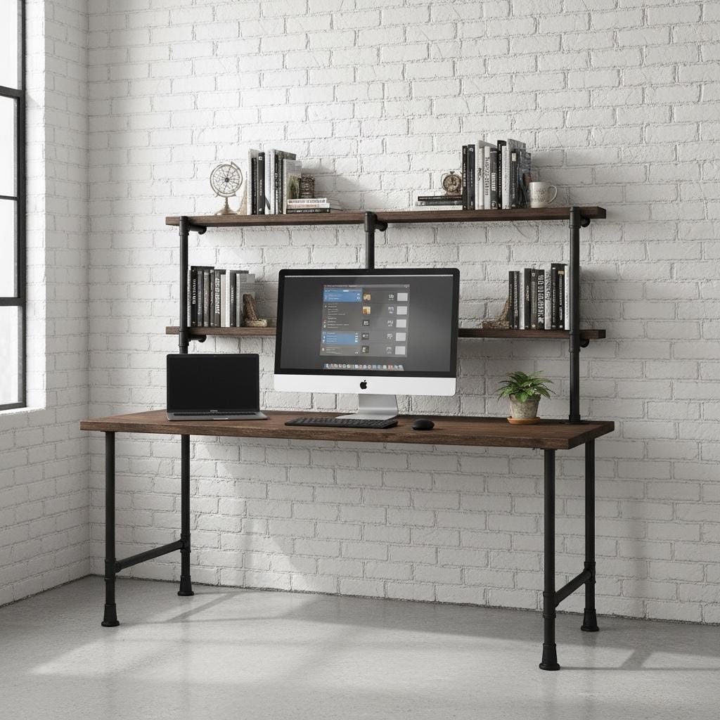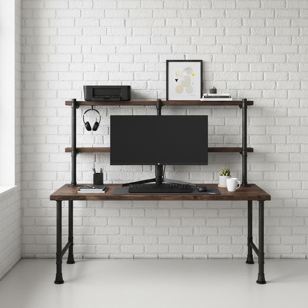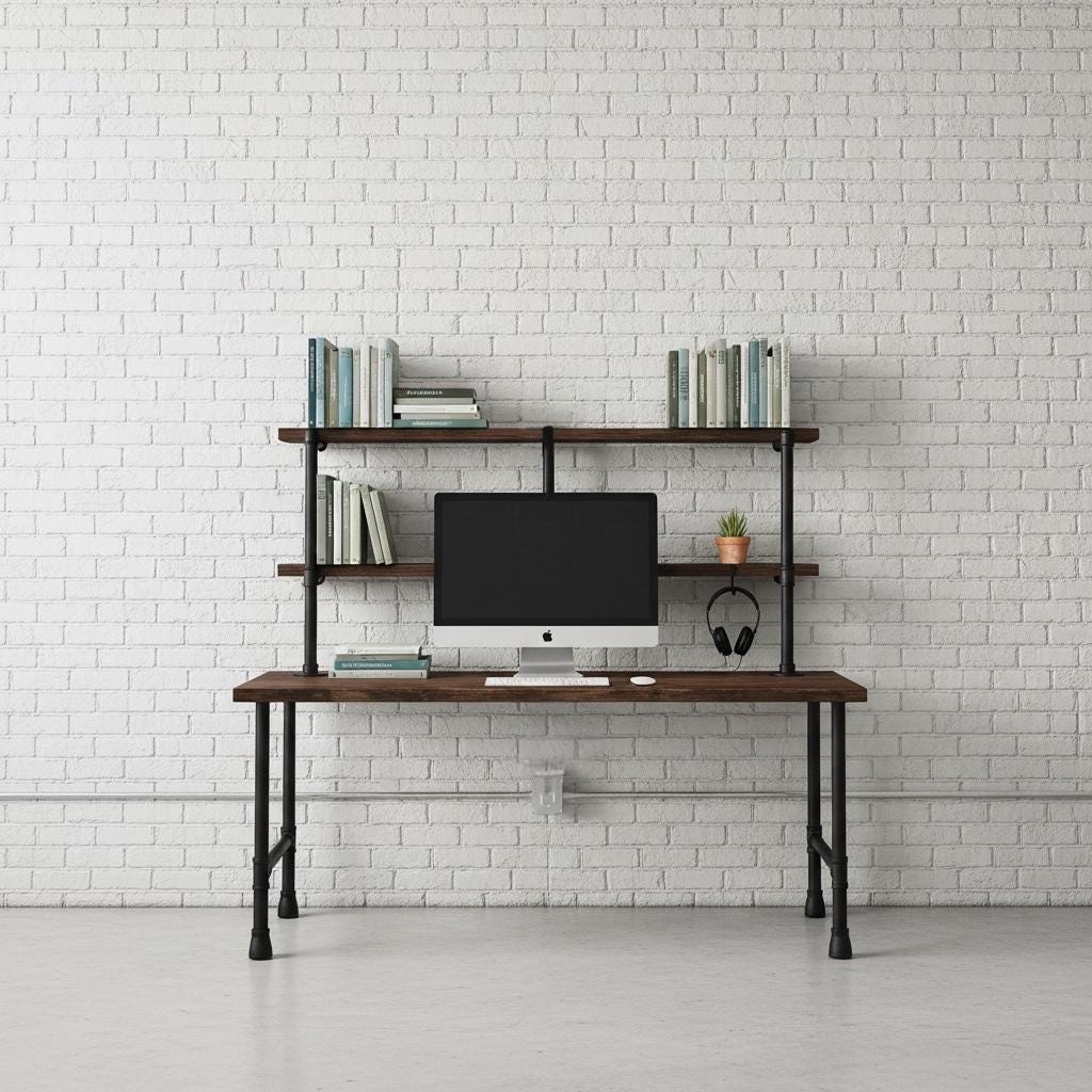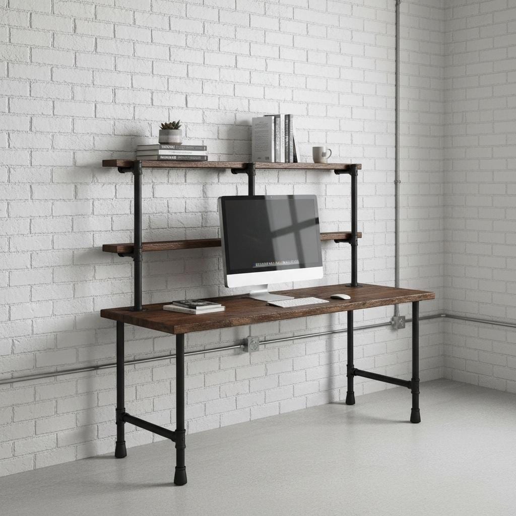 RUSTIC WOOD & PIPE DESK with ELEVATED SHELVES handmade by TRUMAKE™