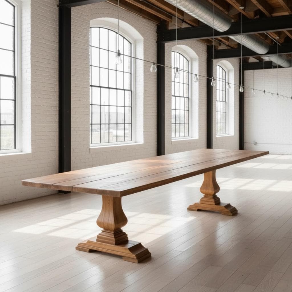 TRUMAKE™ RUSTIC WOOD PEDESTAL TABLE
