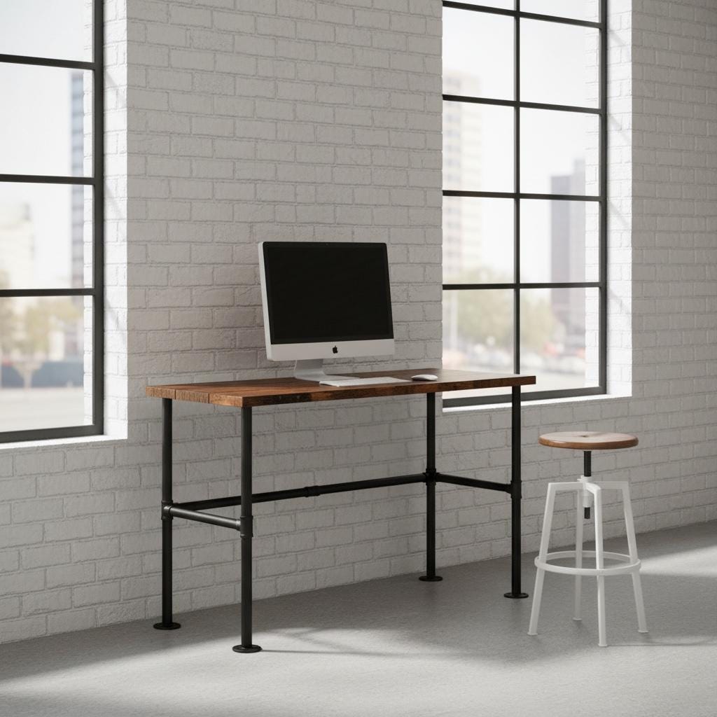 RUSTIC WOOD & PIPE STANDING DESK