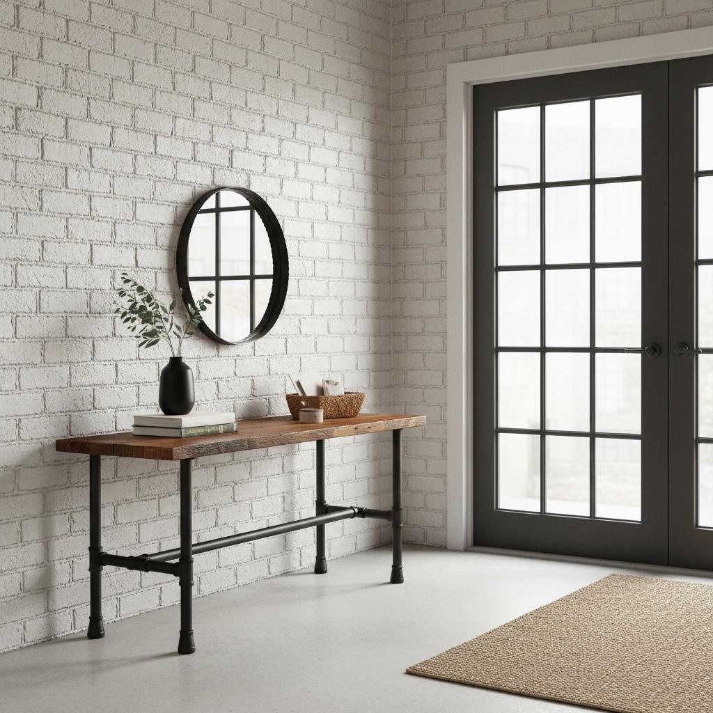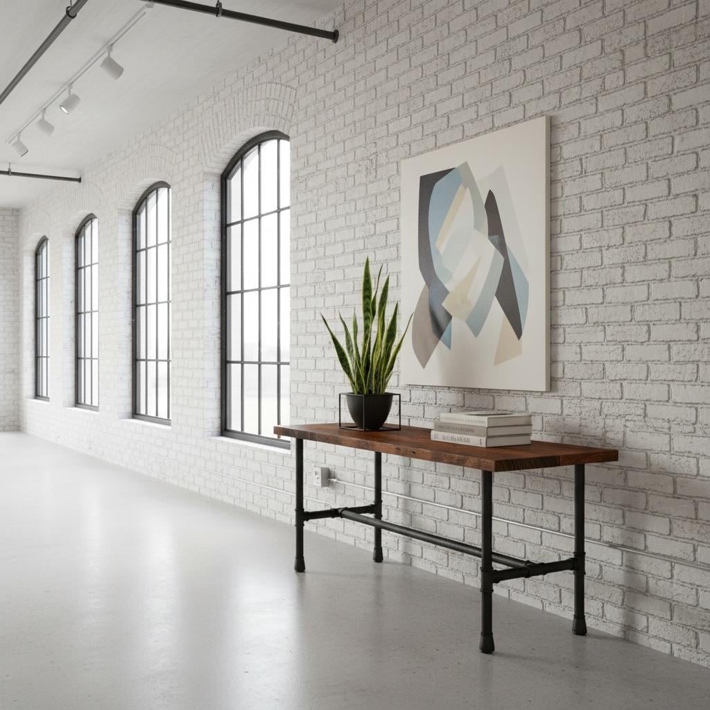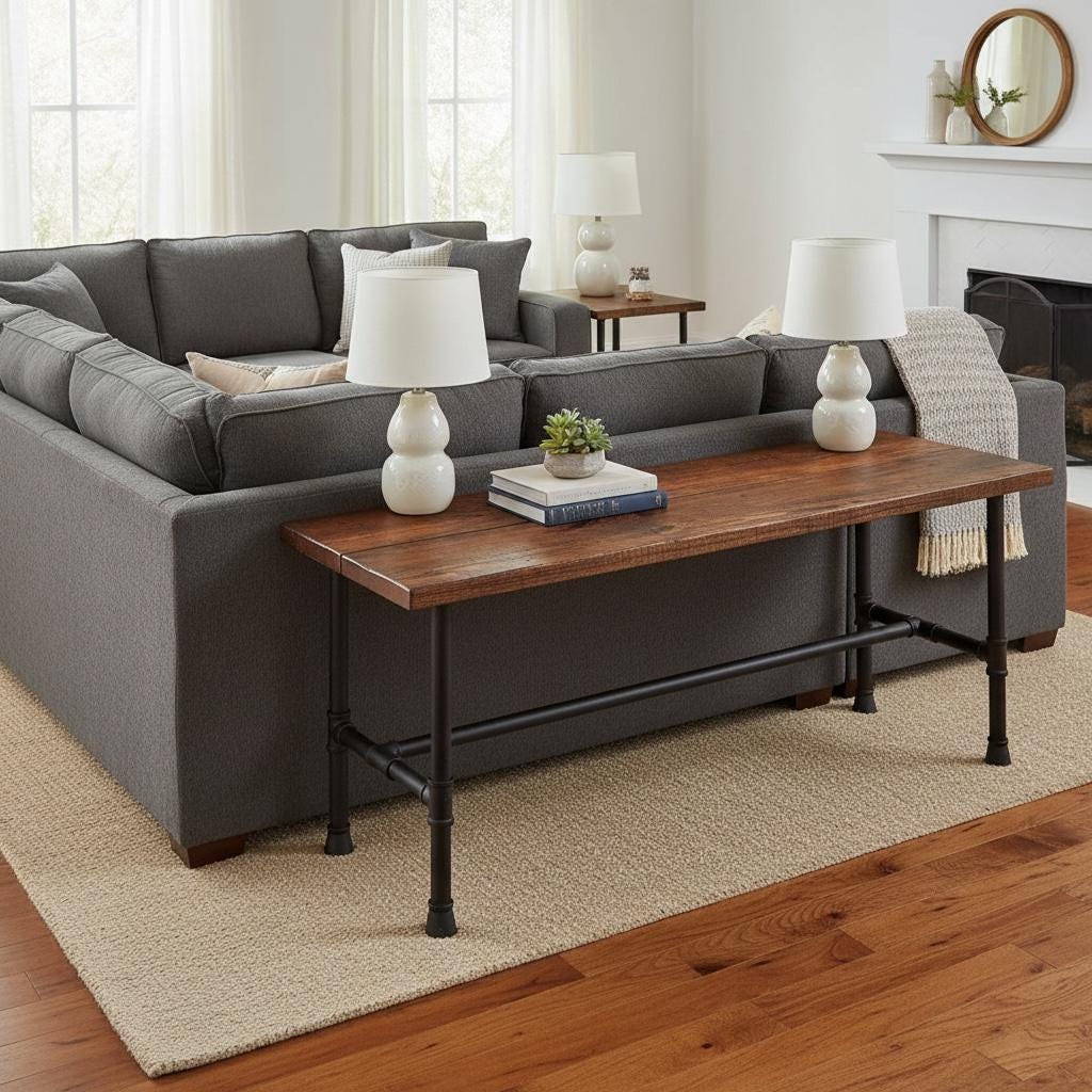 RUSTIC WOOD & PIPE CONSOLE TABLE