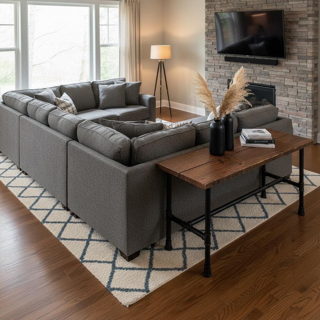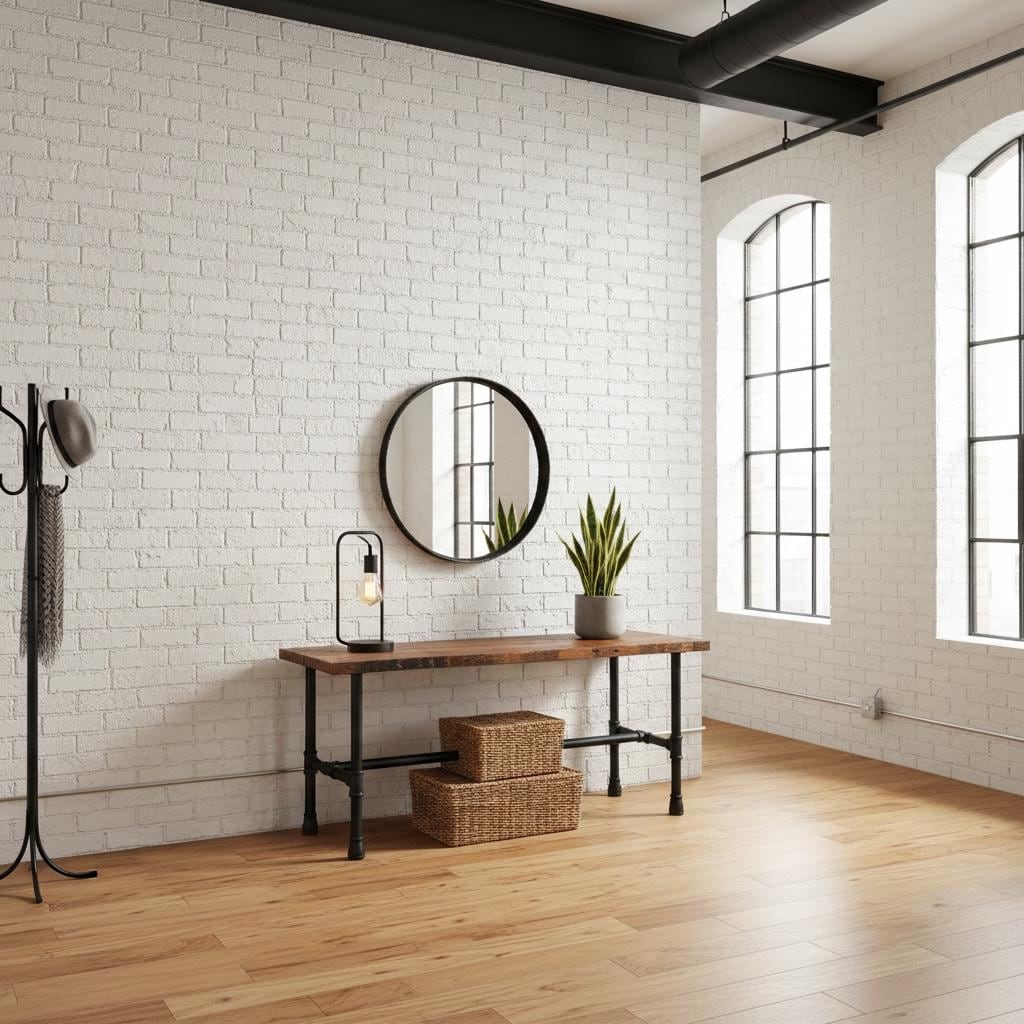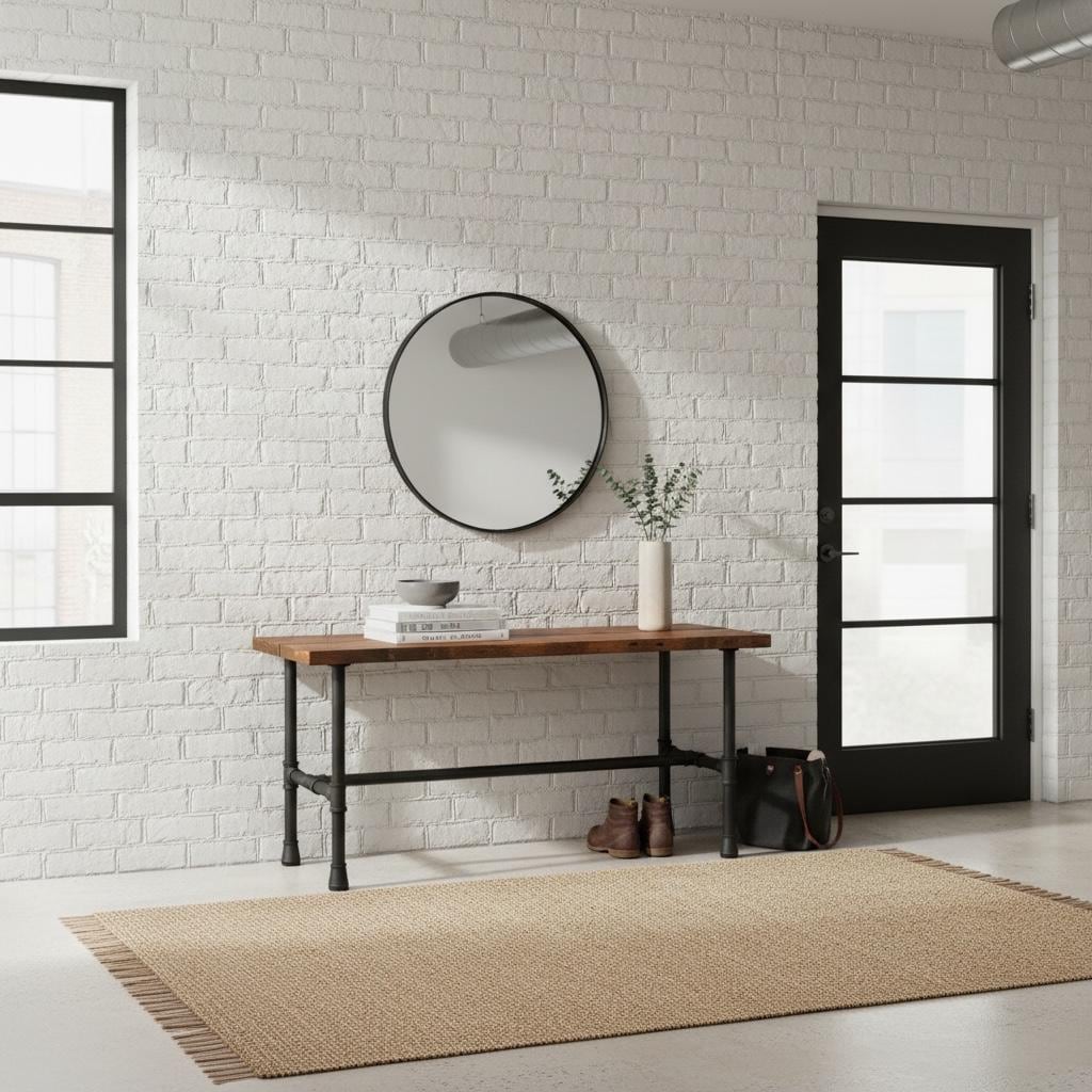 RUSTIC WOOD & PIPE CONSOLE TABLE