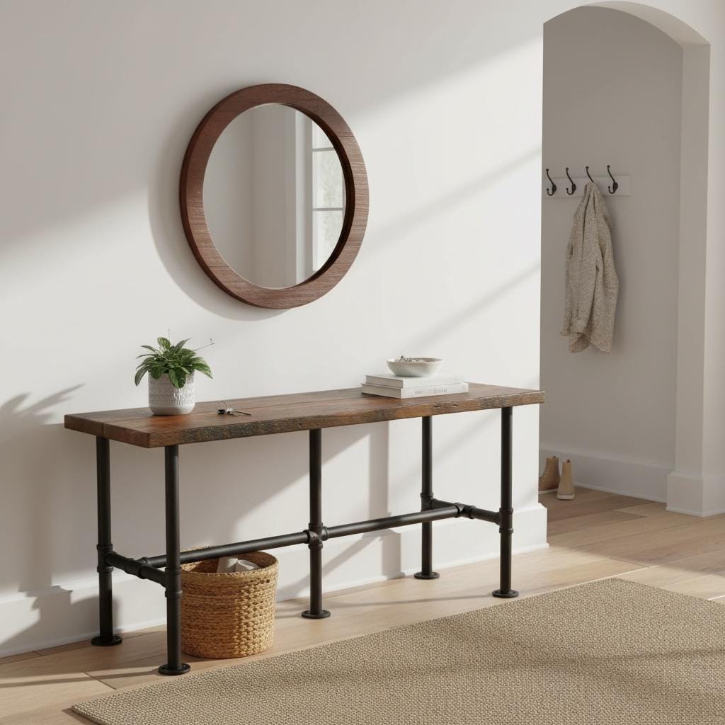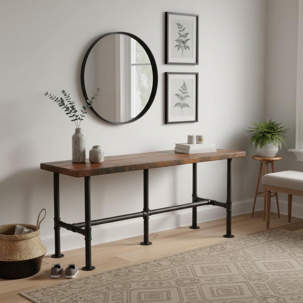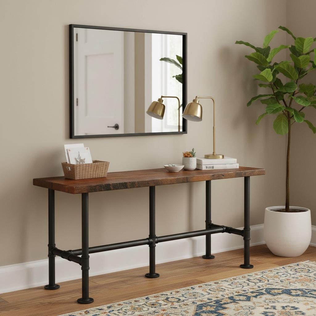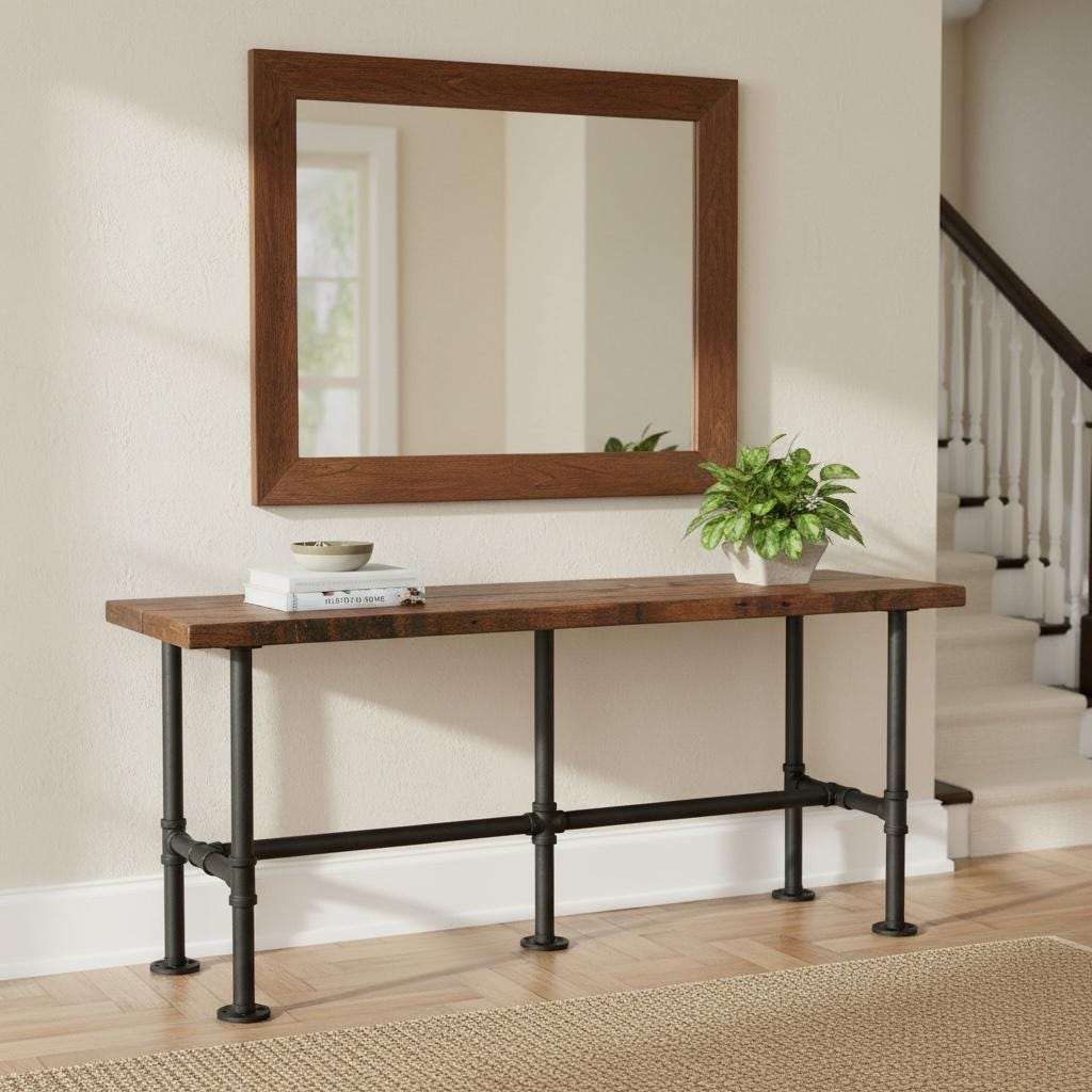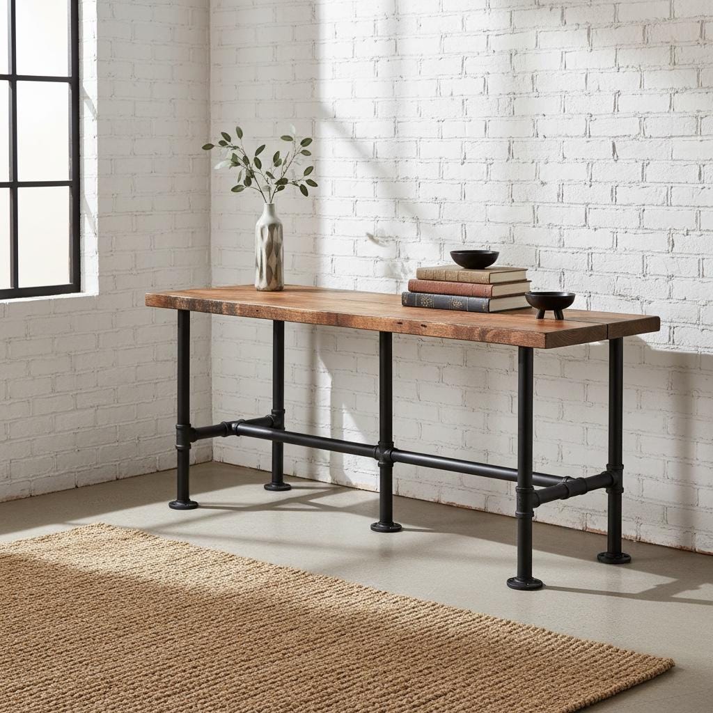 RUSTIC WOOD & PIPE CONSOLE TABLE