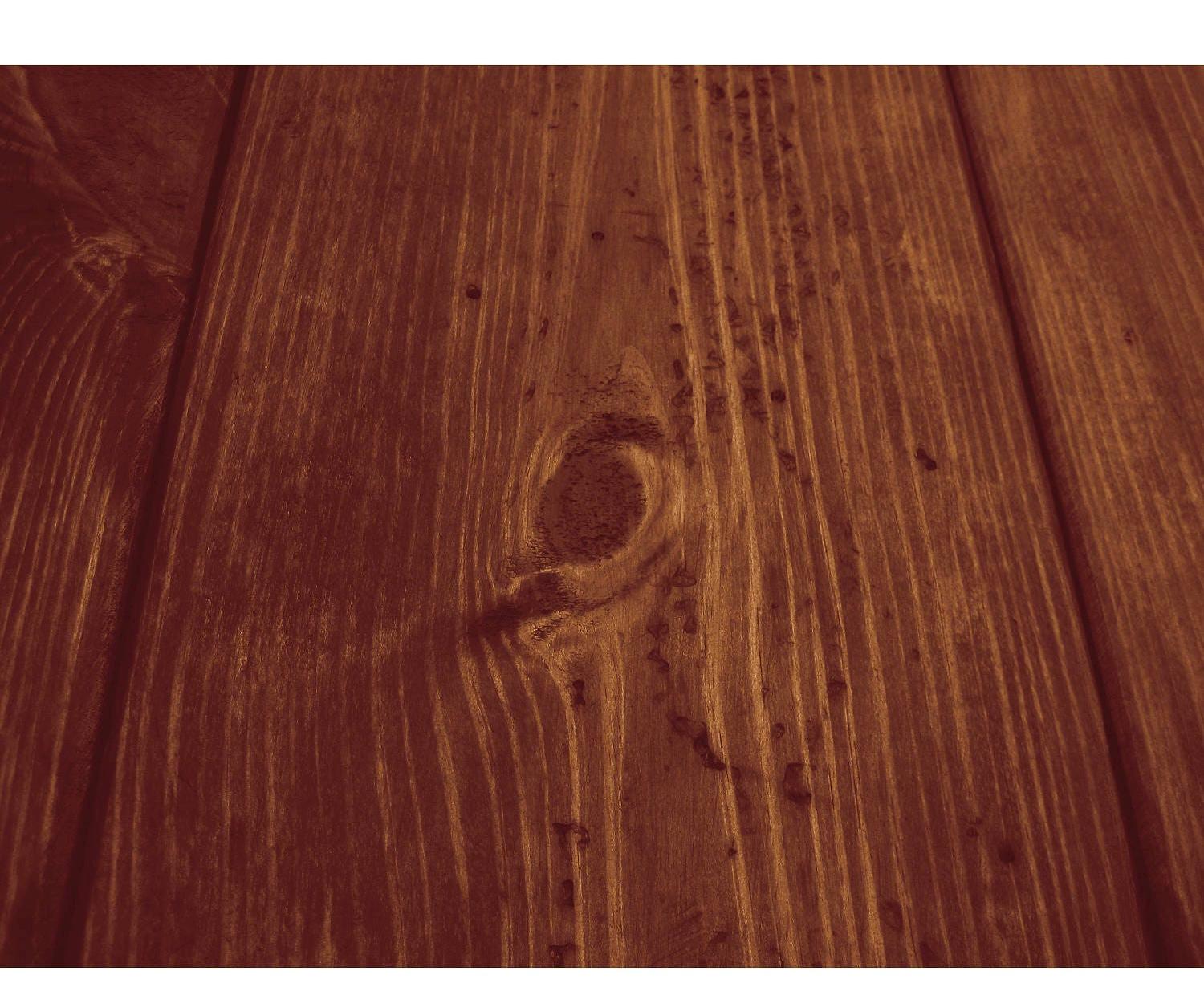 All finishes are hand applied and top coated with an environmentally-friendly water based polyurethane. Surface includes half-inch V-shaped grooves at each board seam to provide a rustic plank board feel and appearance. The following characteristics are considered acceptable and iconic to the appearance, nature and use of our products: distressing, saw blade or tool marks, nail holes, impressions & dents, lose knots or holes, scratches, cupping, warping, bow, uneven boards, weathering, mineral staining, discoloration, cracks or splitting, rust, blotches, sap, color changes, wood tone or stain color variations, grain or species variations. Characteristics vary within each item and are not guaranteed in exacting appearance in every product.