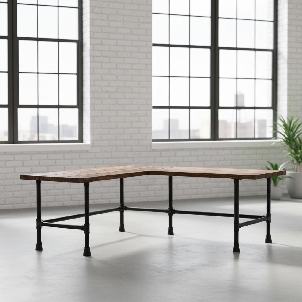 L SHAPE, RUSTIC WOOD & PIPE DESK