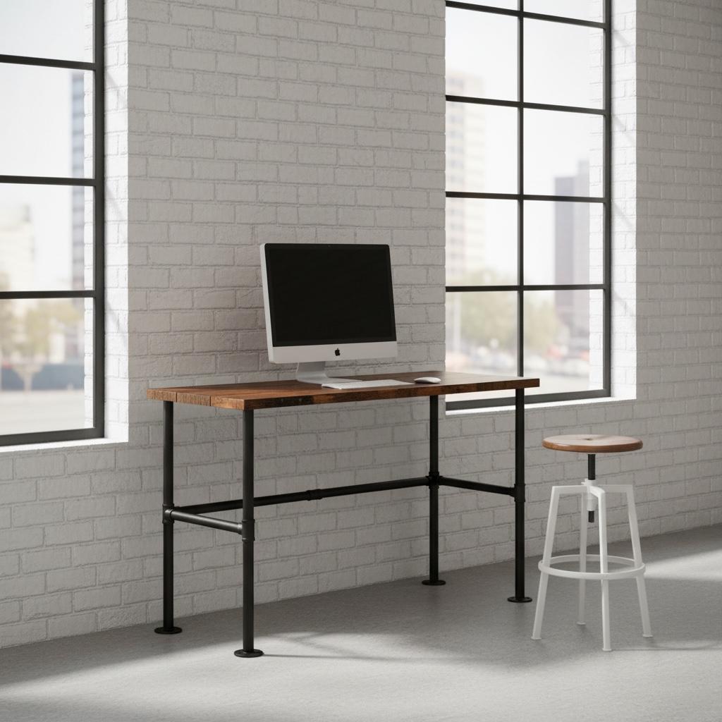 This beautiful Rustic Wood Desk features industrial steel pipe legs topped off with a thick 1.5" solid wood surface. The desk top is handcrafted from carefully selected timber, chosen for characteristics such as knots, variable grain patterns, saw marks, nail holes, dents and distressed details, as well as many other unique characteristics. Each piece is handled with care and crafted with hours of skillful labor. Like crafting a piece of artwork, the wood is sawed, shaped and sanded to form this beautiful treasure.The surface also features approximately one-half inch V-shaped grooves along each joined board edge to provide a rustic plank board feel and appearance. A full array of rich finishes and colors are available for your choosing. All finishes are hand applied and top coated with a water based polyurethane. Order your very own piece of handcrafted furniture today!