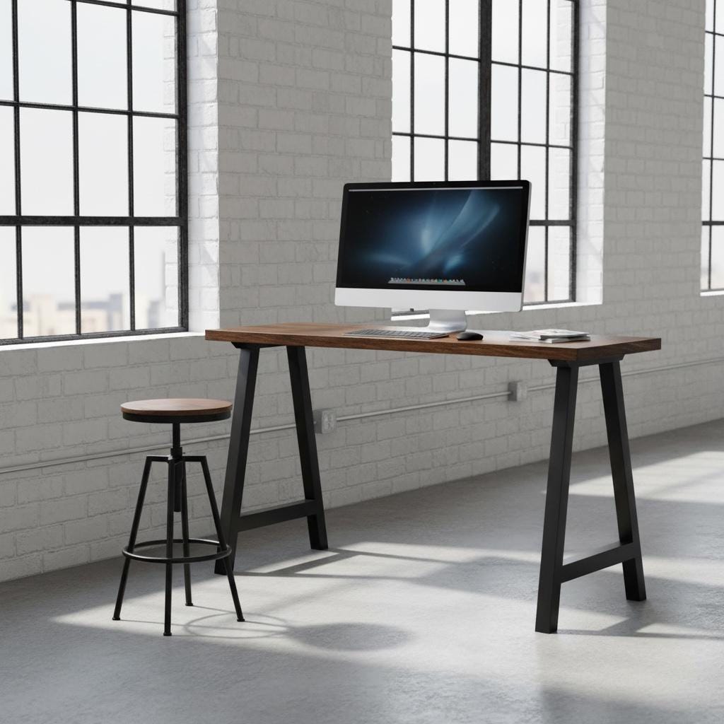 Table height is approx 42" high. All desk tops are made with rustic plank boards. Select the Length and Width (L x W) as well as the Leg Color in the drop down menu option.