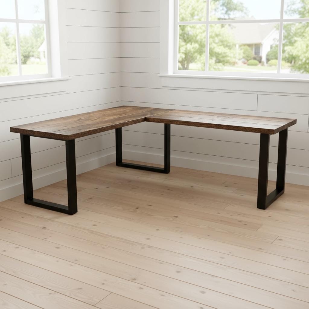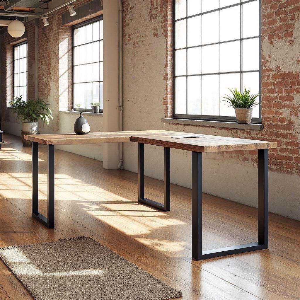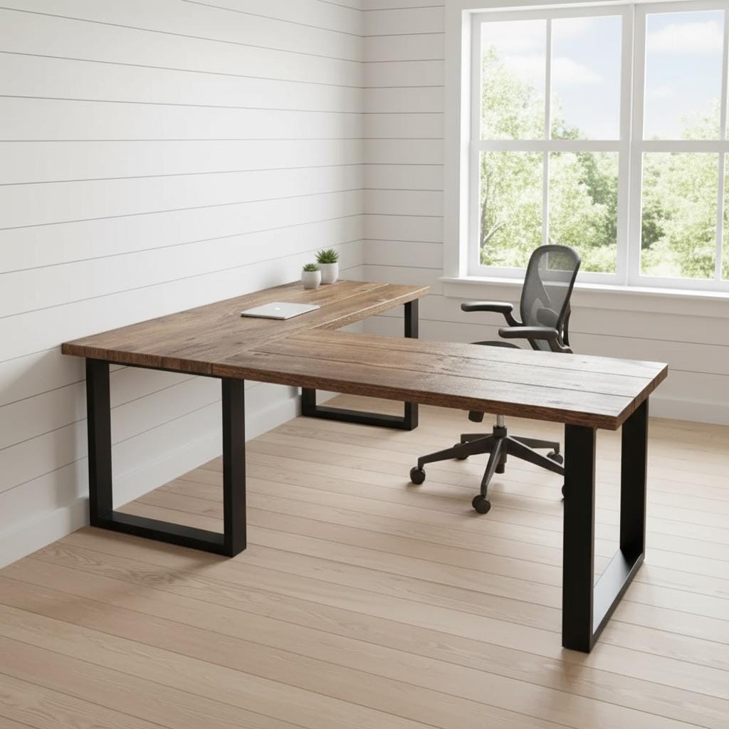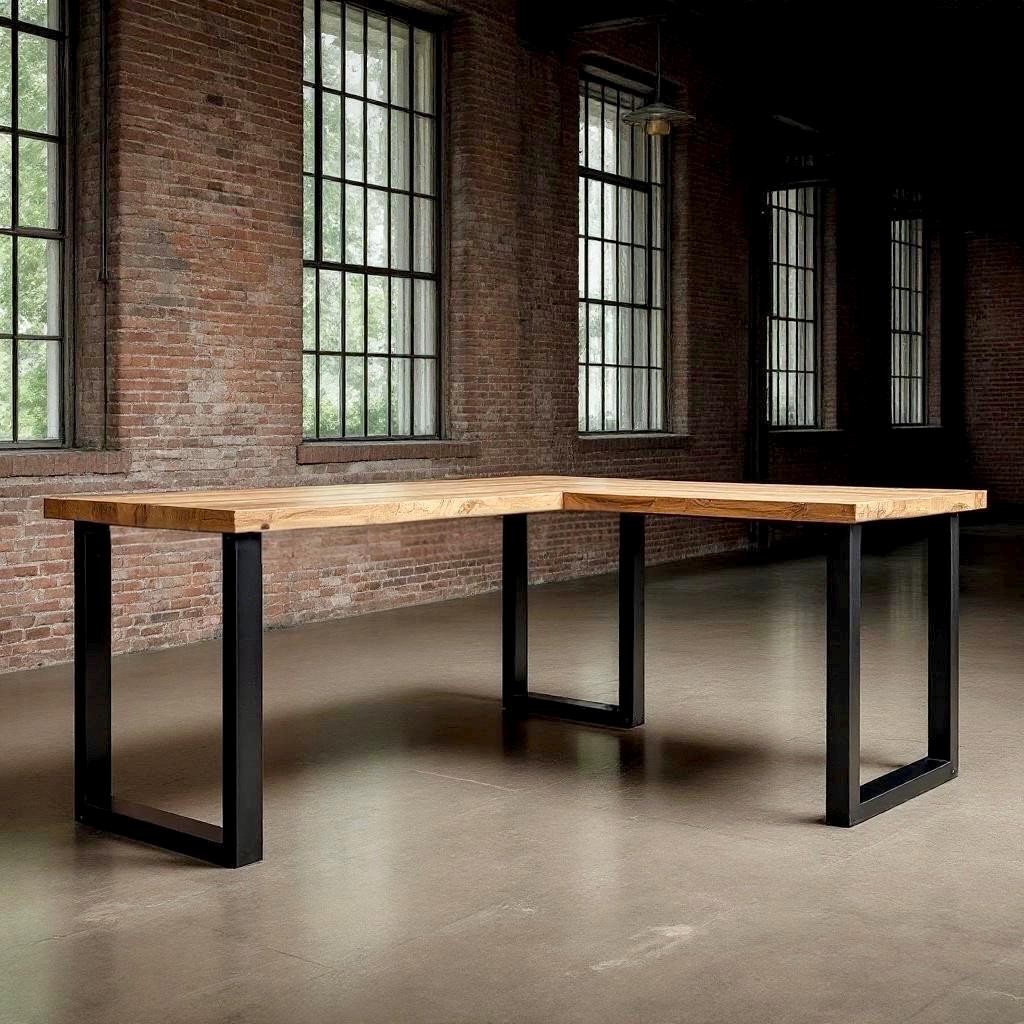 SQUARE LEG / L-SHAPED RUSTIC WOOD & STEEL DESK