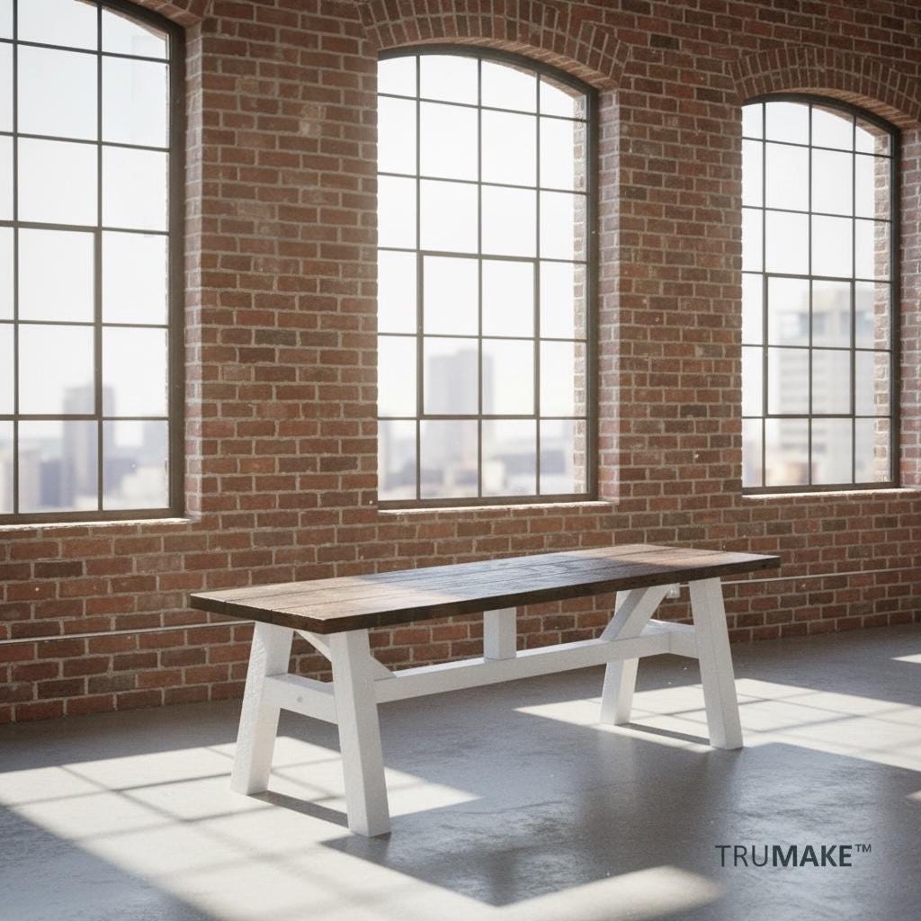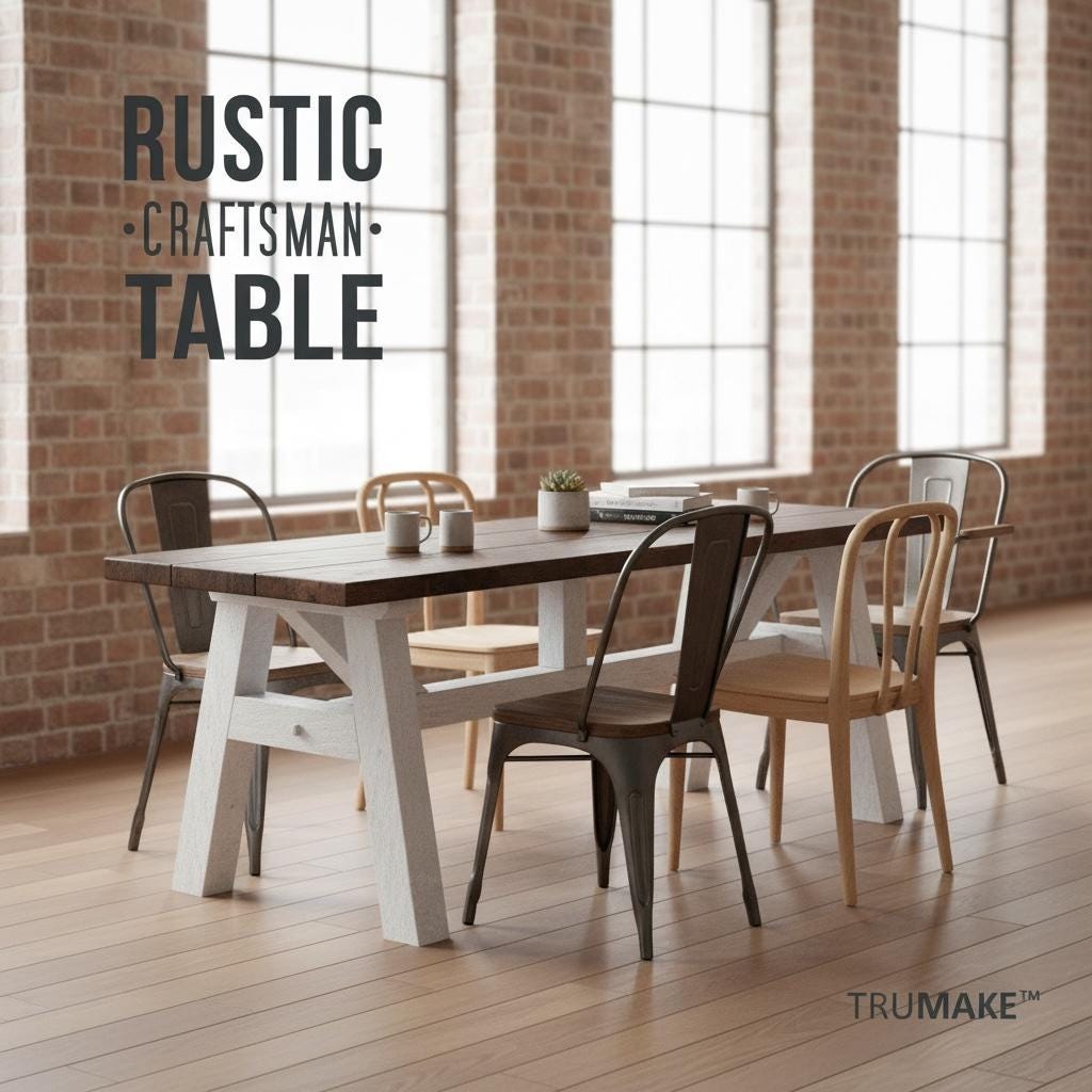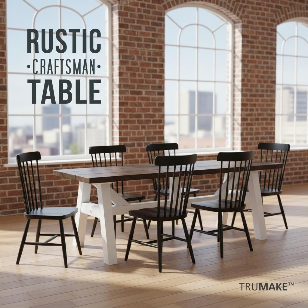 This beautiful Rustic Wood Table features solid wood Legs with a thick 1.5" solid wood surface. The table top is handcrafted from carefully selected timber, chosen for characteristics such as knots, variable grain patterns, saw marks, nail holes, dents and distressed details, as well as many other unique characteristics. Each piece is handled with care and crafted with hours of skillful labor. Like crafting a piece of artwork, the wood is sawed, shaped and sanded to form this beautiful treasure.The surface also features approximately one-half inch V-shaped grooves along each joined board edge to provide a rustic plank board feel and appearance. A full array of rich finishes and colors are available for your choosing. All finishes are hand applied and top coated with a water based polyurethane. Order your very own piece of handcrafted TRUMAKE™ furniture today!
