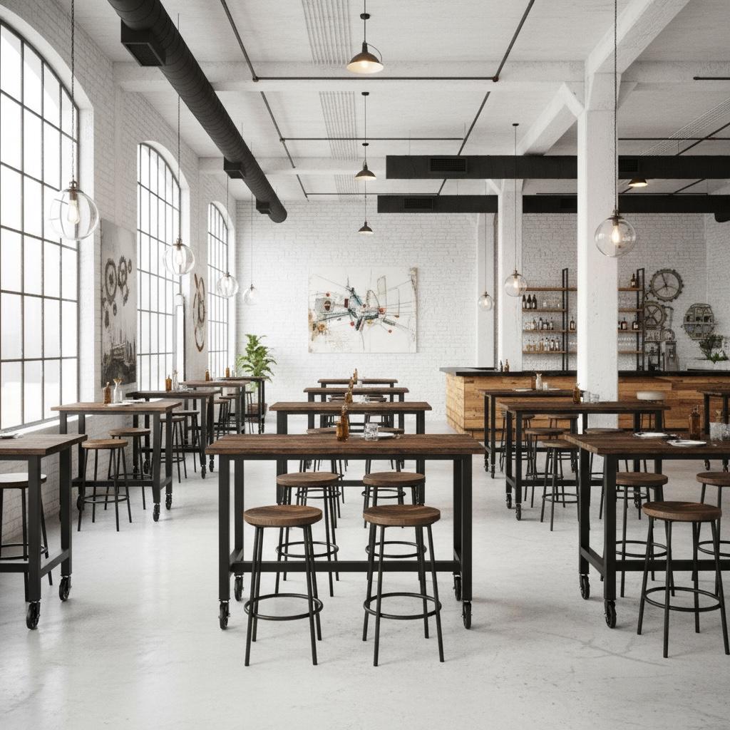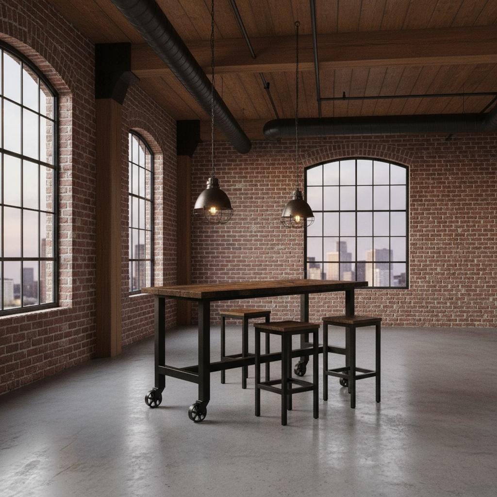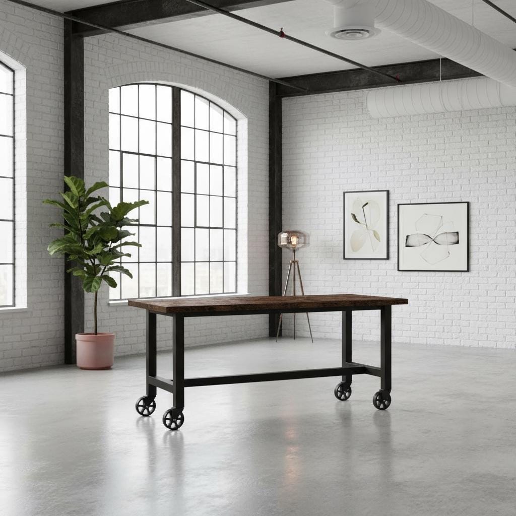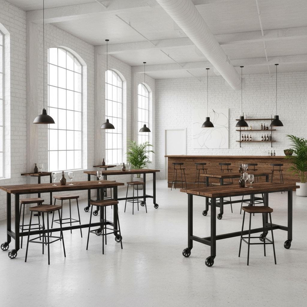 • TRUMAKE™ RUSTIC WOOD & STEEL BAR TABLE with Locking Caster Wheels